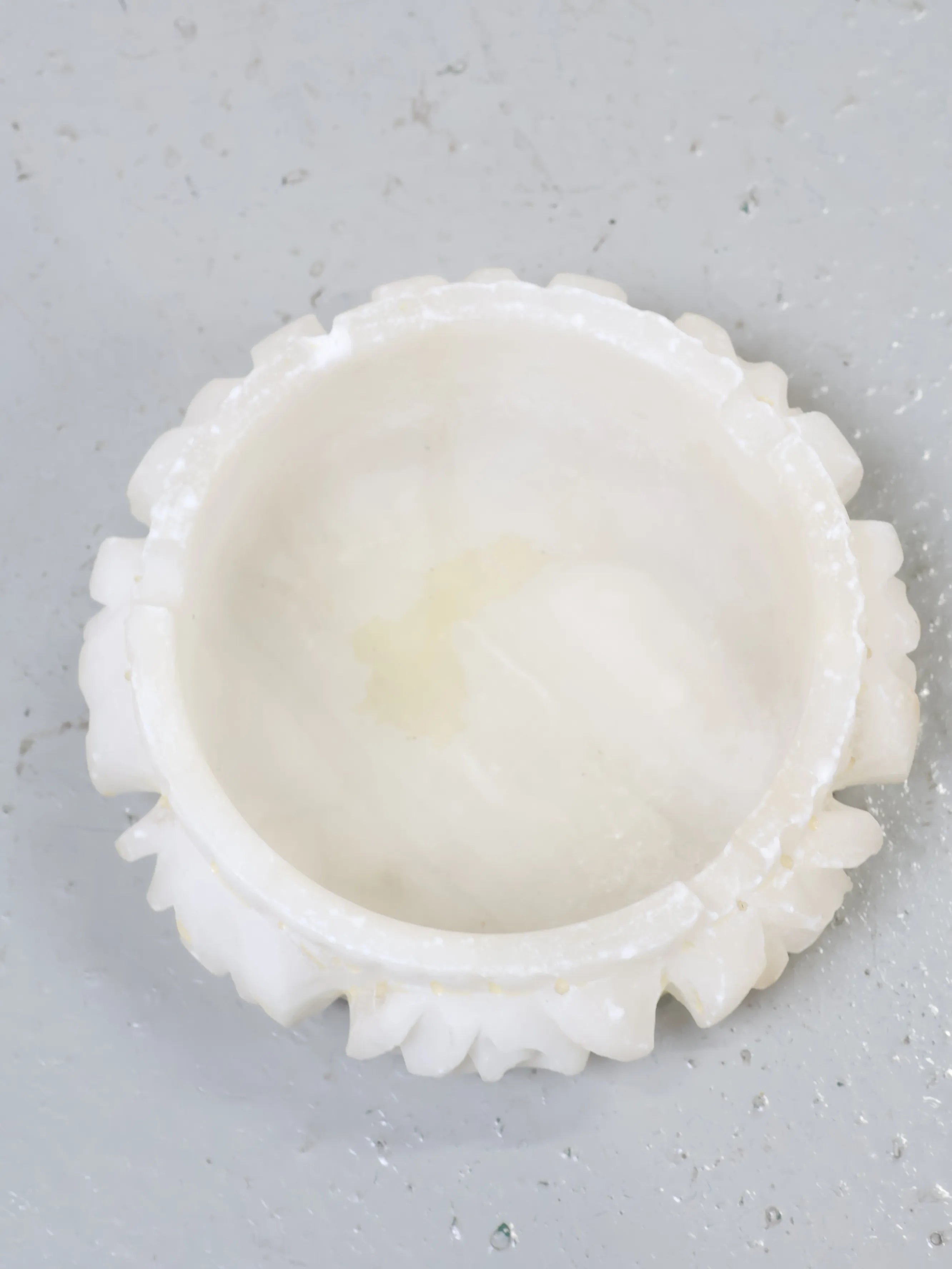 柔らかく半透明な質感が特徴のアラバスターを、ハンドカービングによって仕上げた一品。