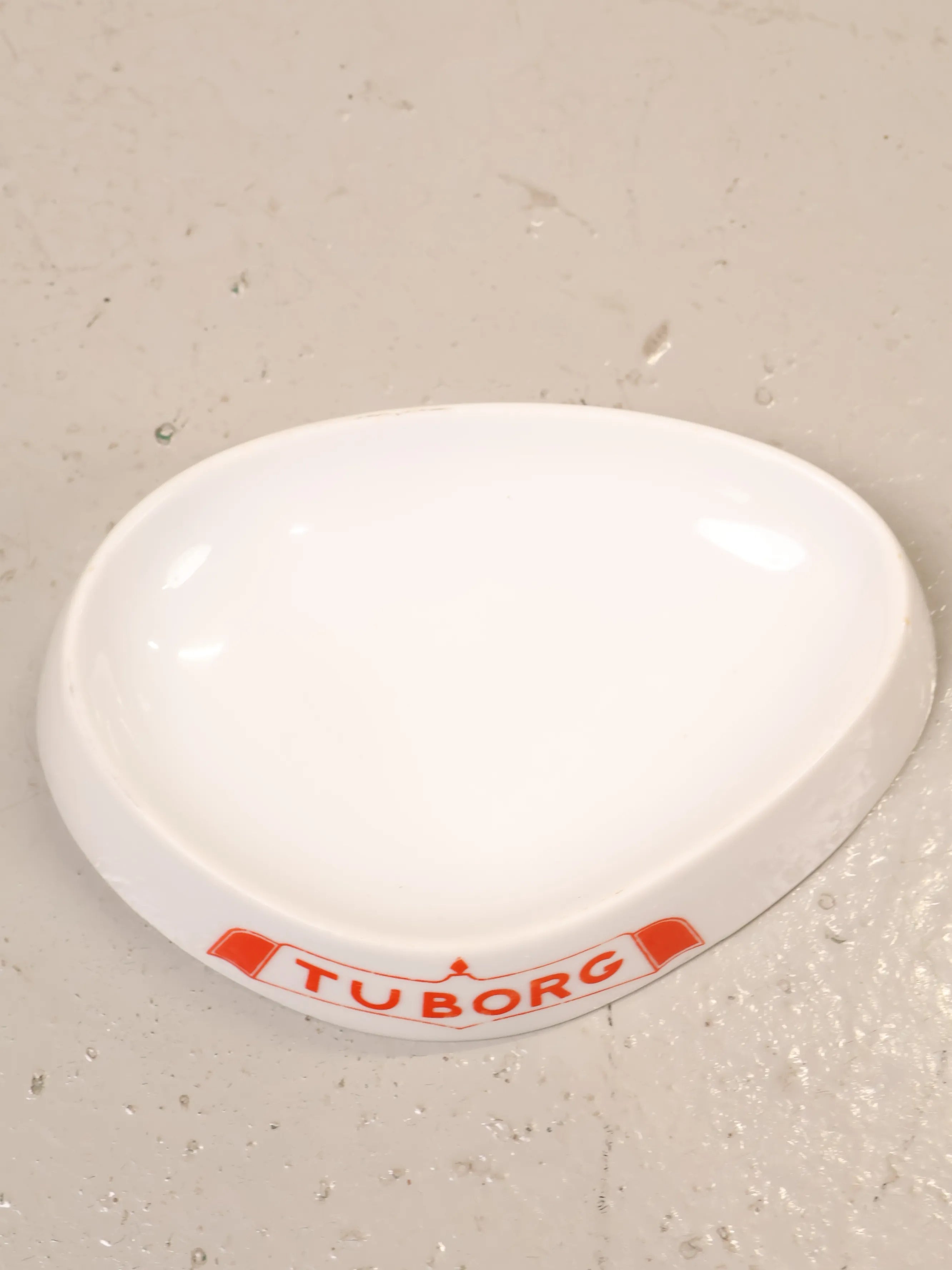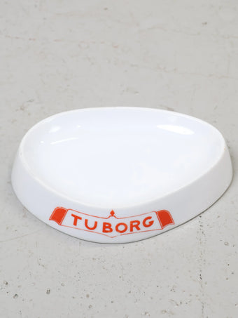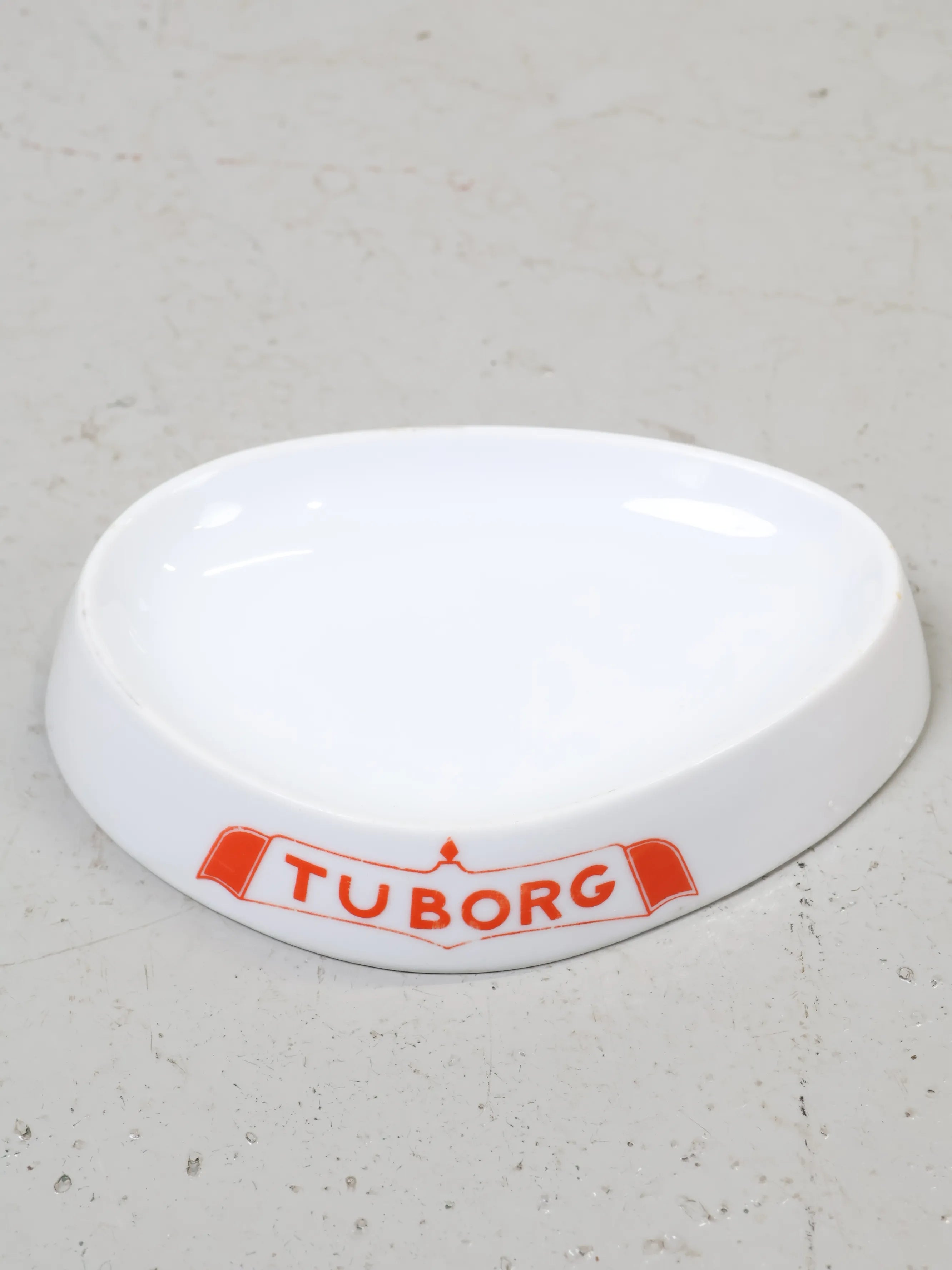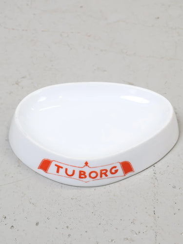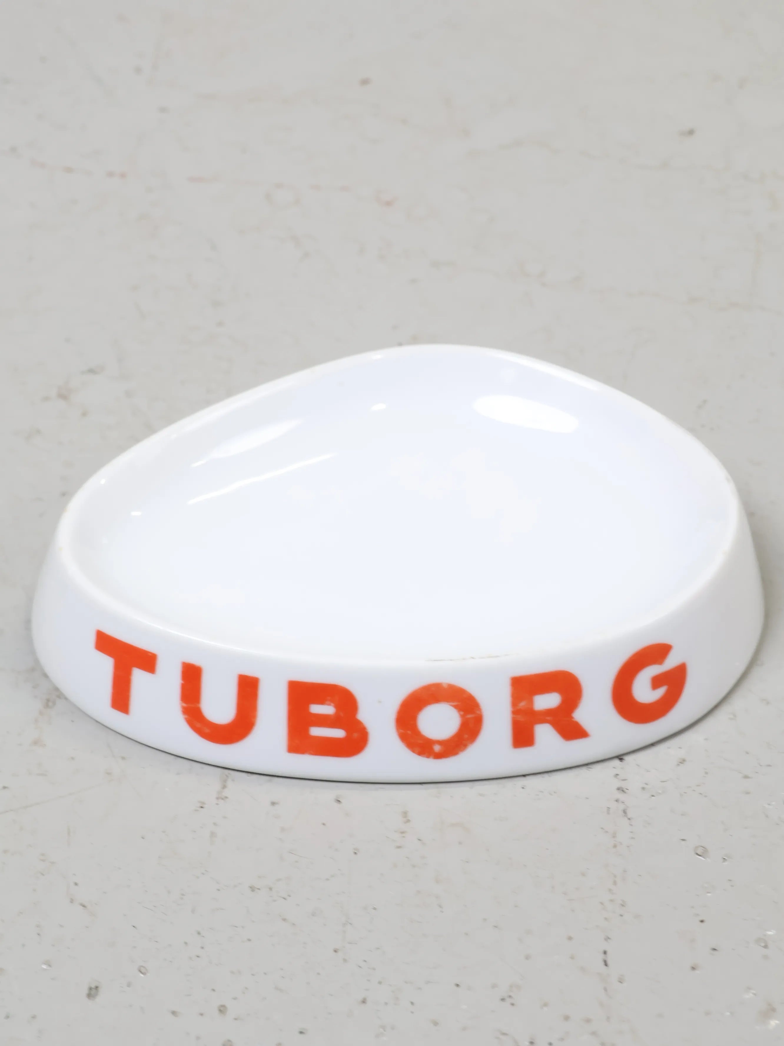 1980年代 ヴィンテージ Tuborg ホワイトセラミック アッシュトレイ 灰皿 ビール企業ノベルティ