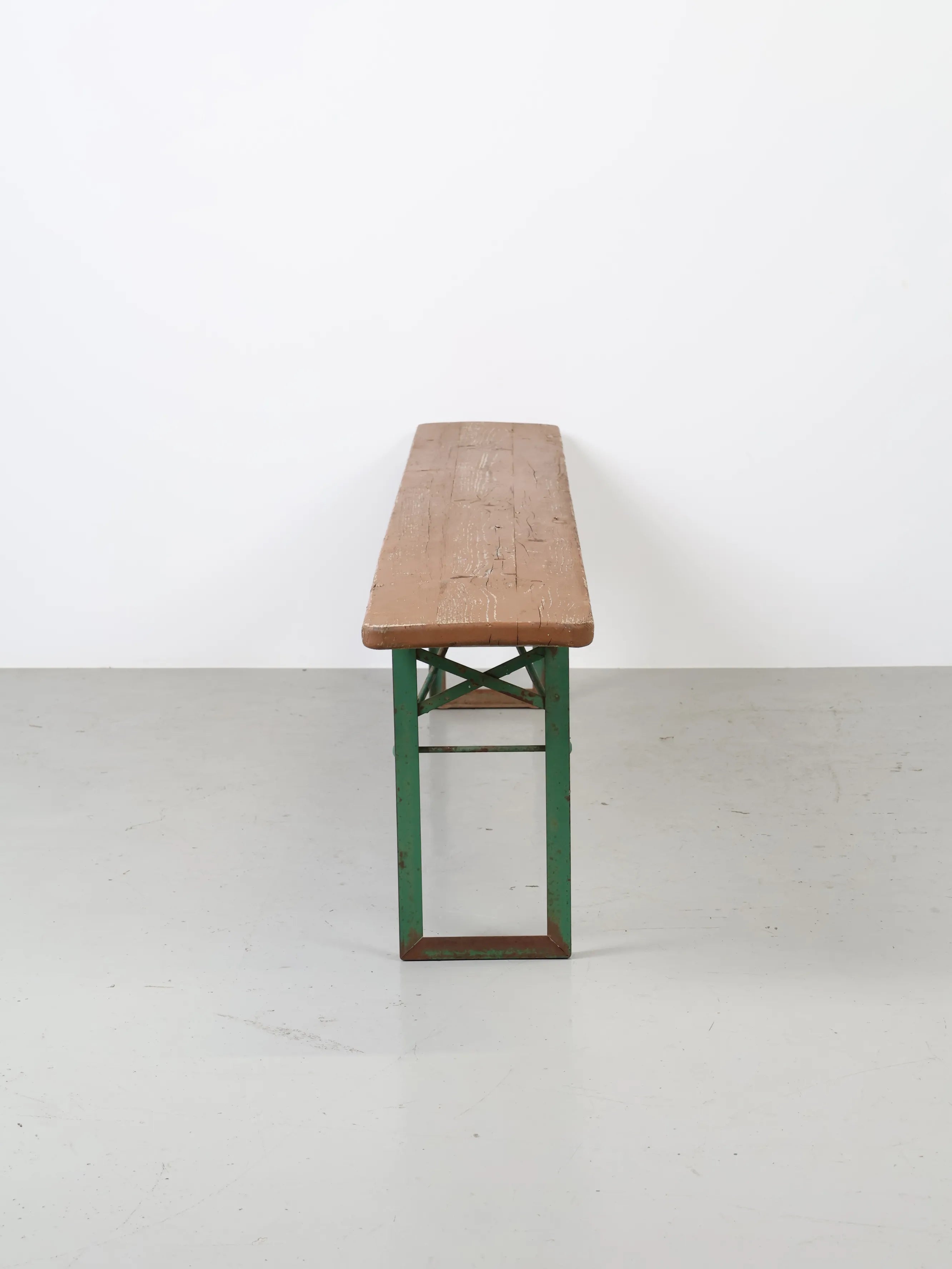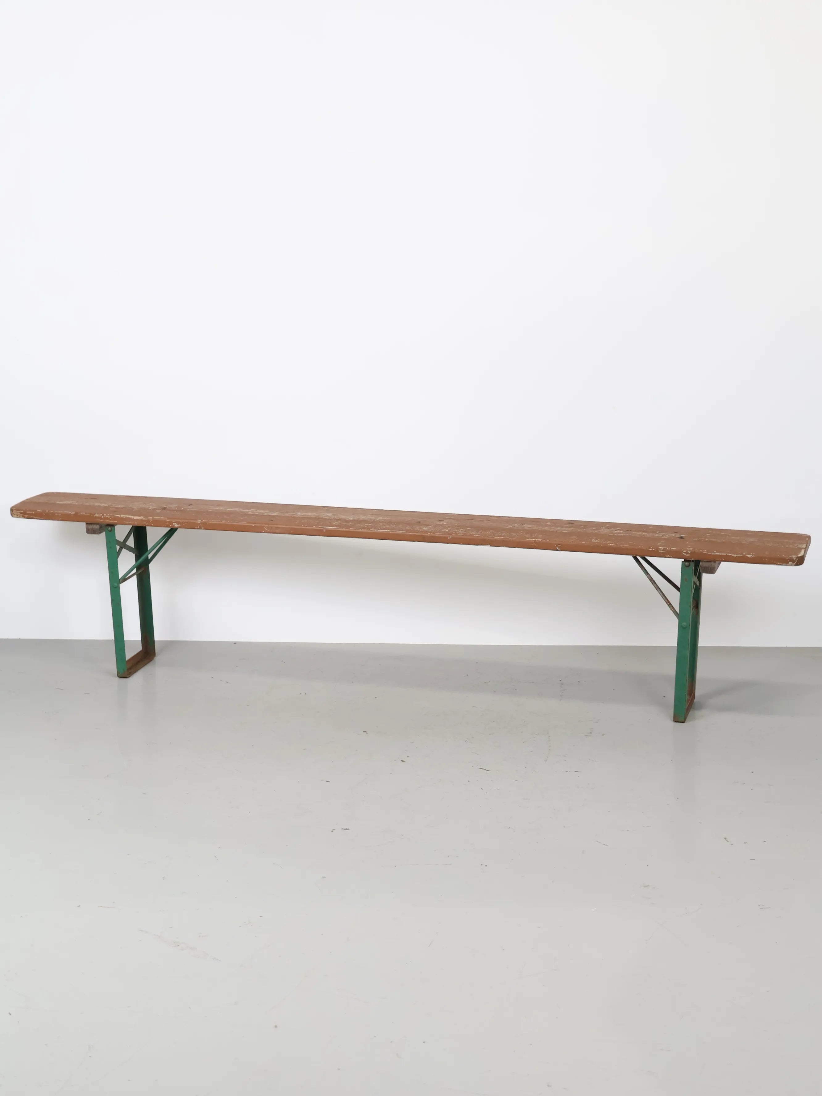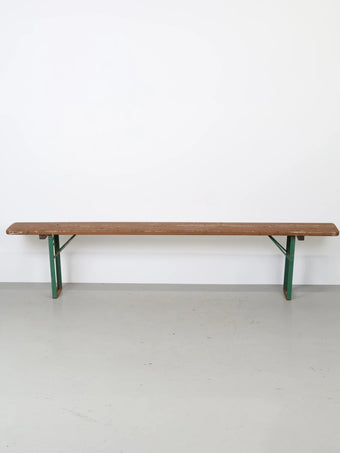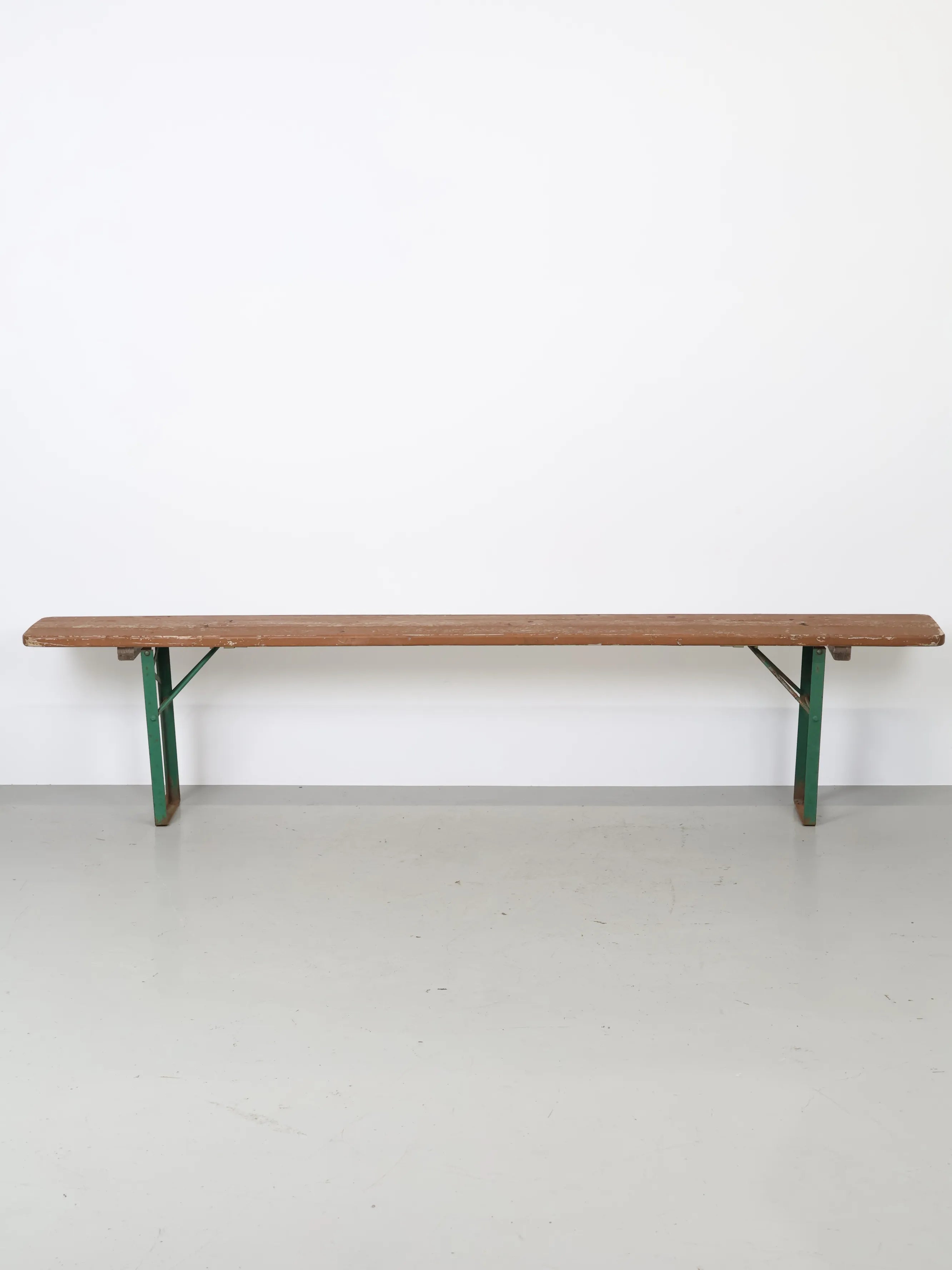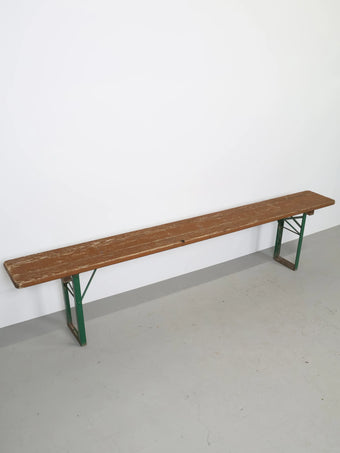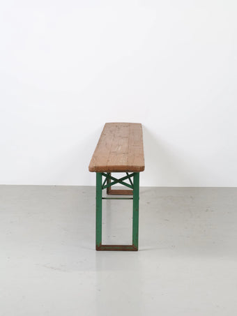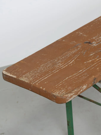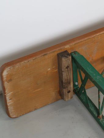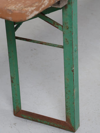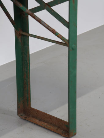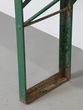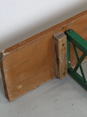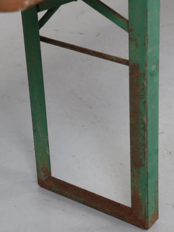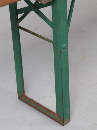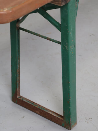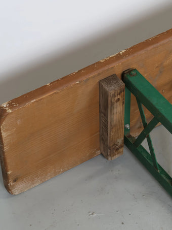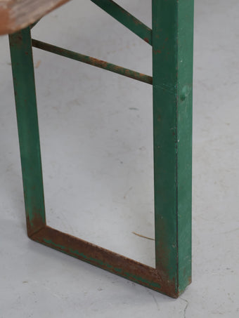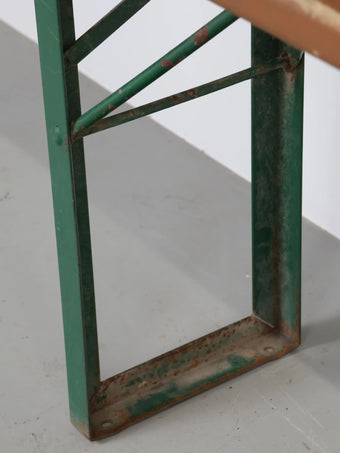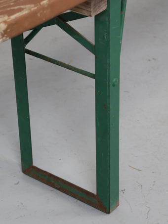ハンガリーより買い付けましたグリーンメタルレッグフォルディングウッドガーデンベンチです。
