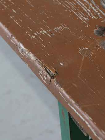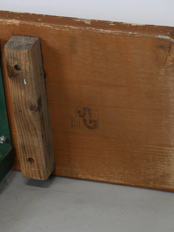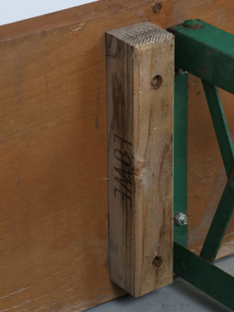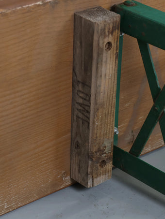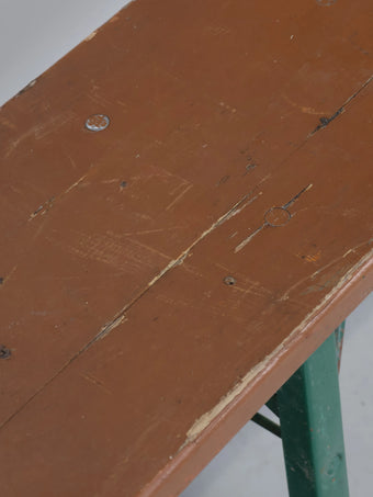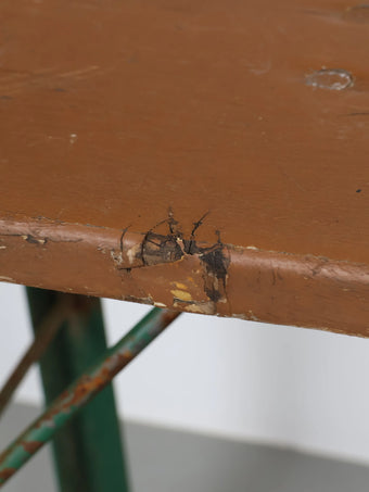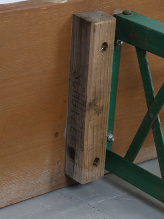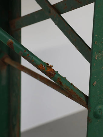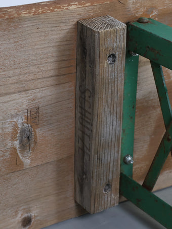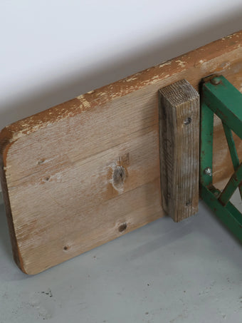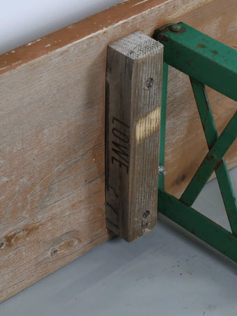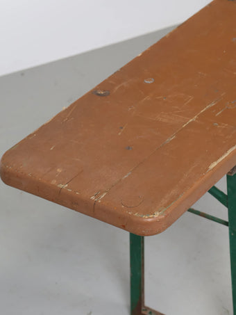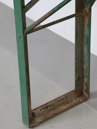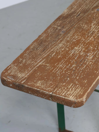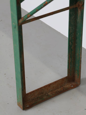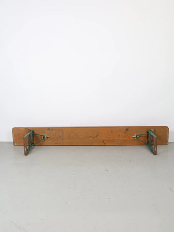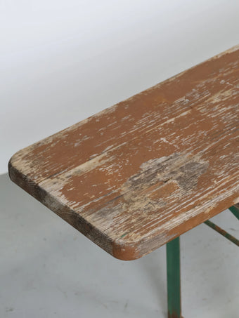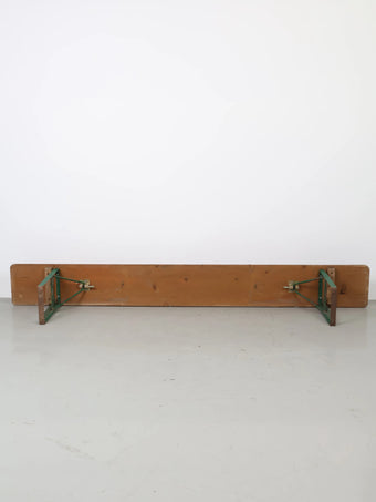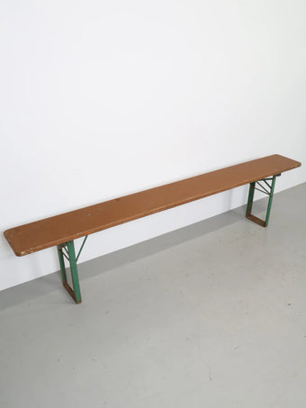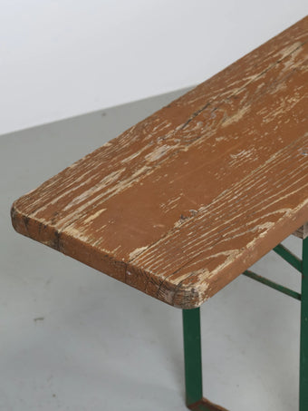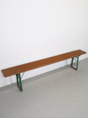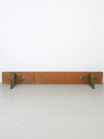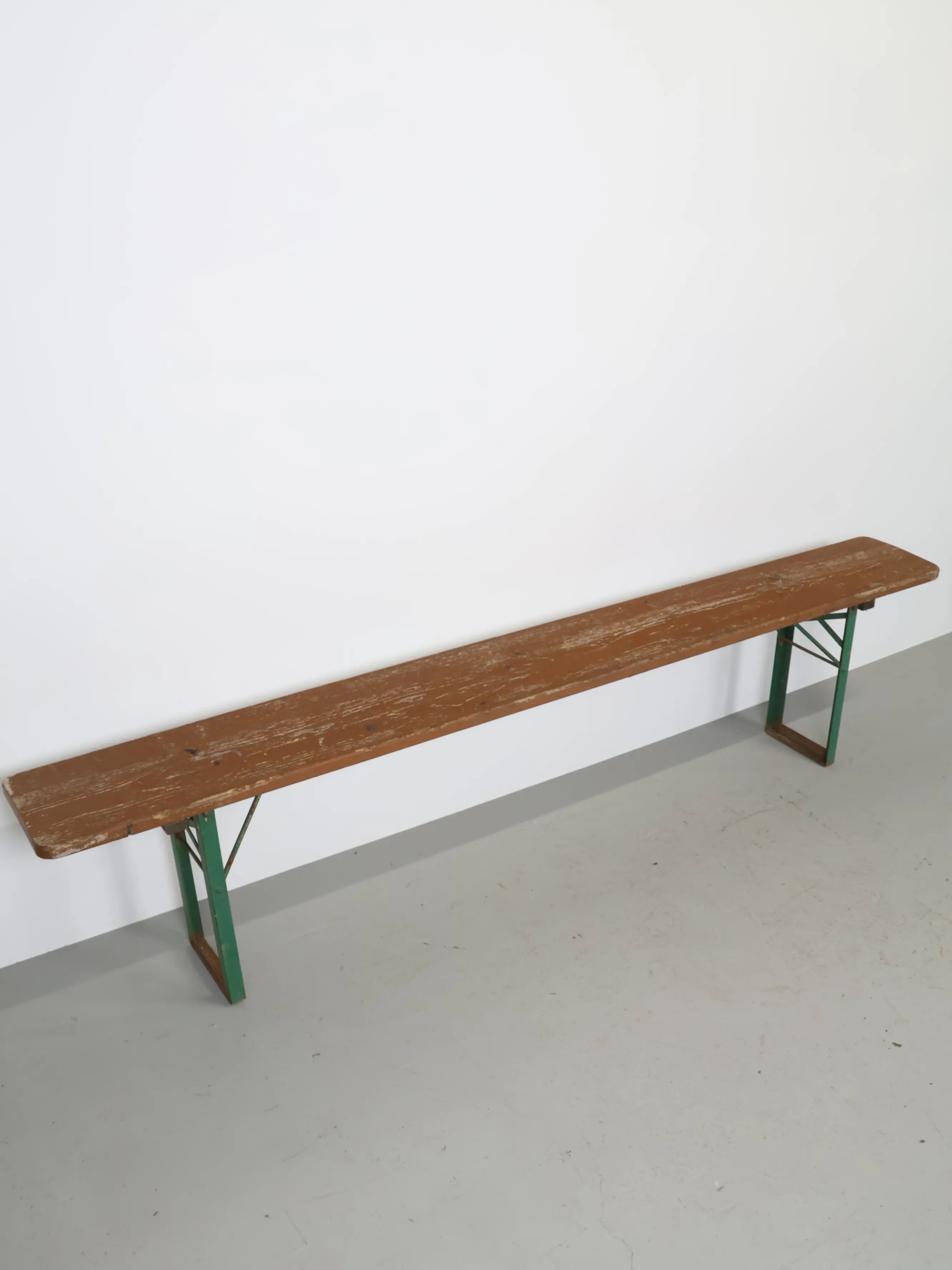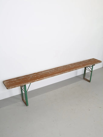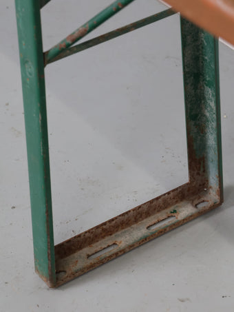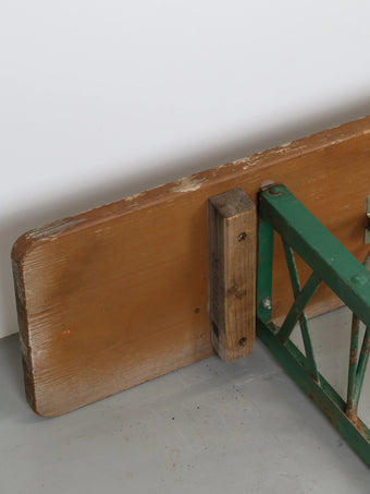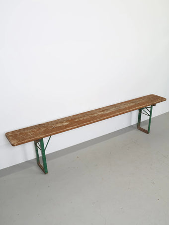 ハンガリーより買い付けましたグリーンメタルレッグフォルディングウッドガーデンベンチです。