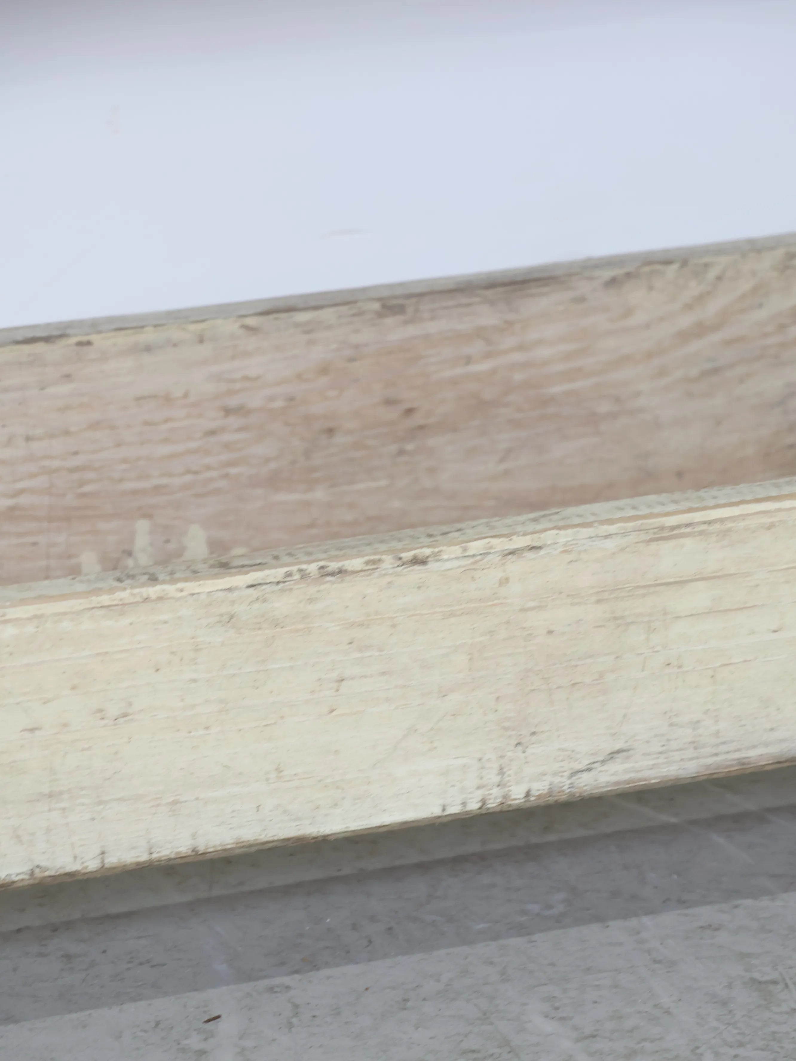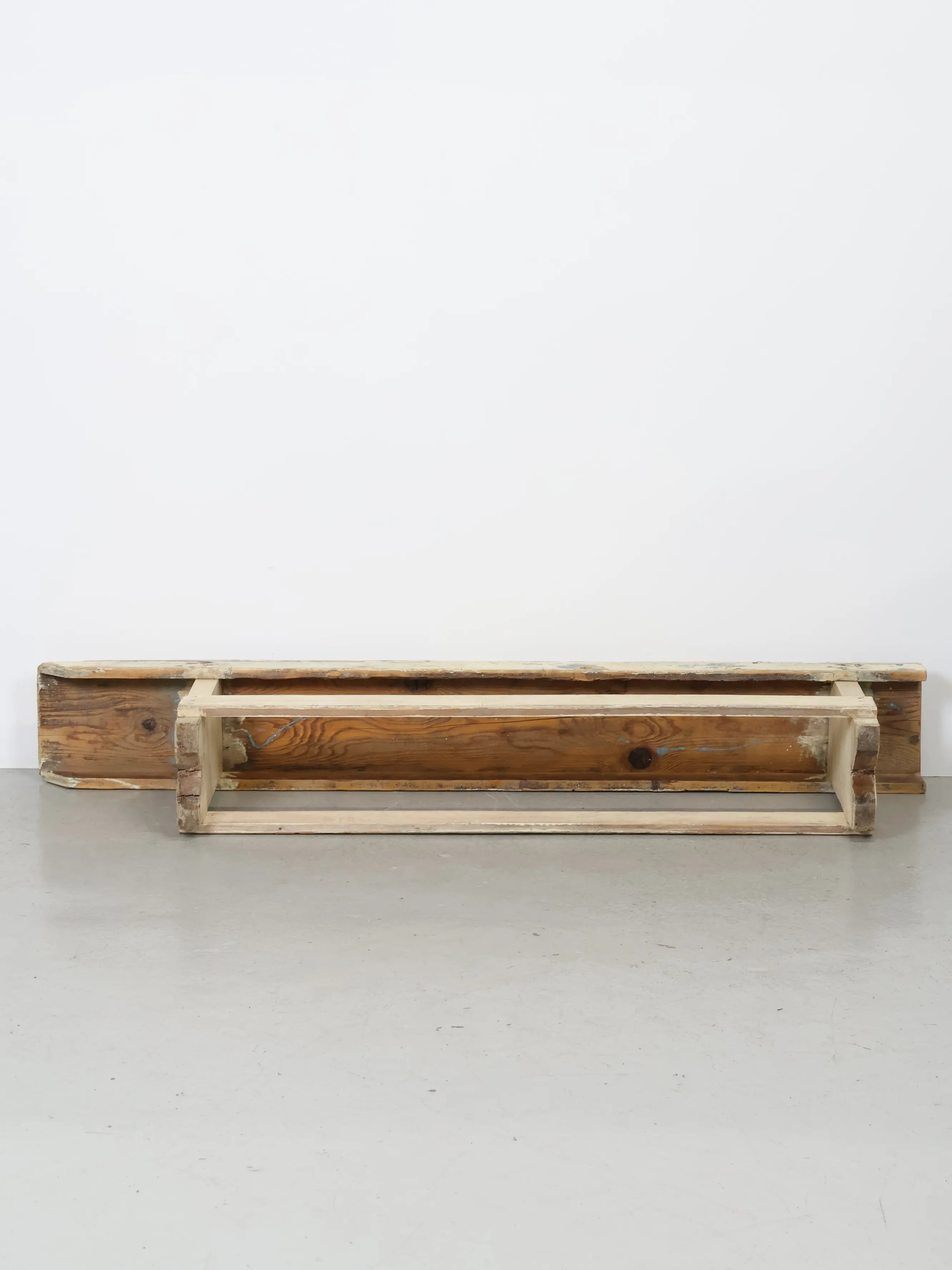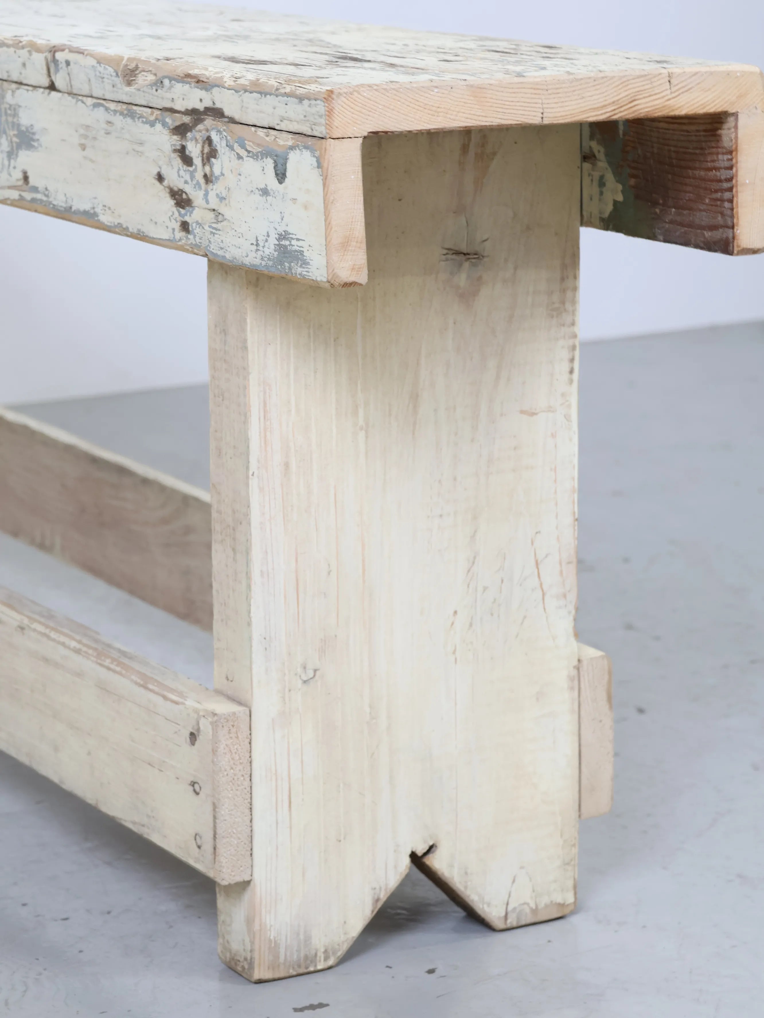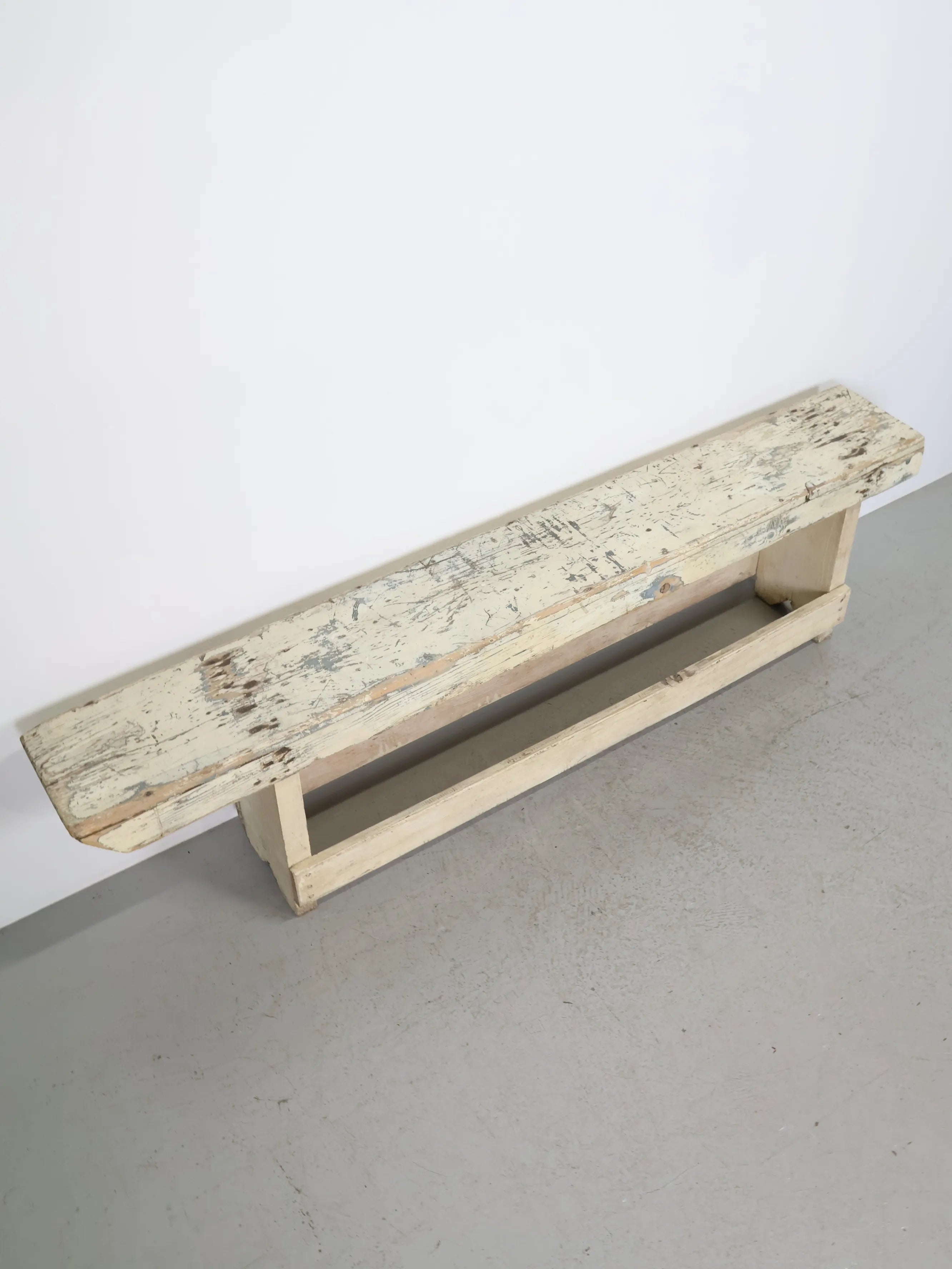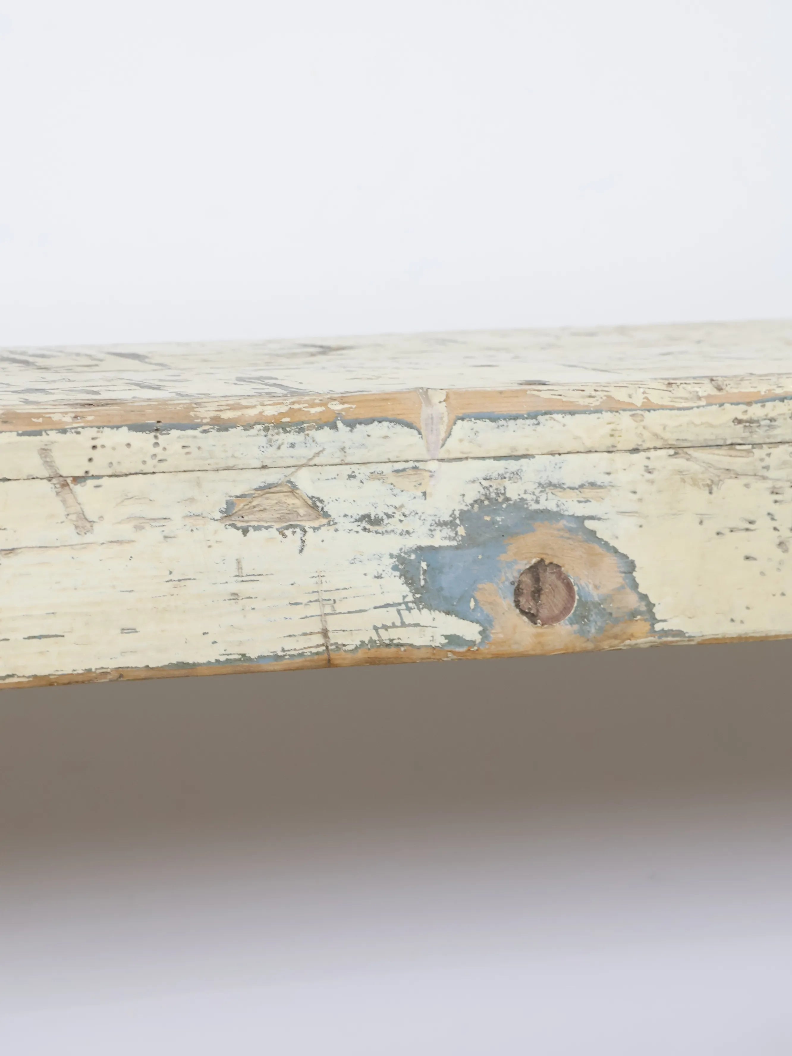 淡いホワイトをベースに、下地の木肌や古い塗装層が所々顔を出し、ヴィンテージならではの奥行きある表情を楽しめます。
