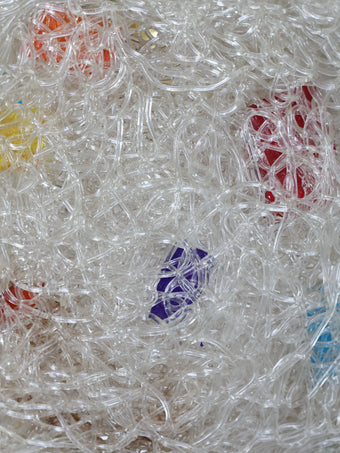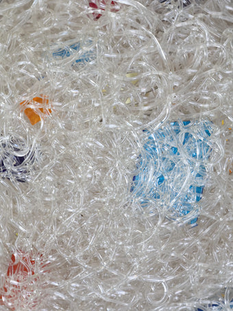 スパゲティーのような細長いアクリル樹脂で幾重にも重ねられたデザインで、通称スパゲティーランプと呼ばれています。