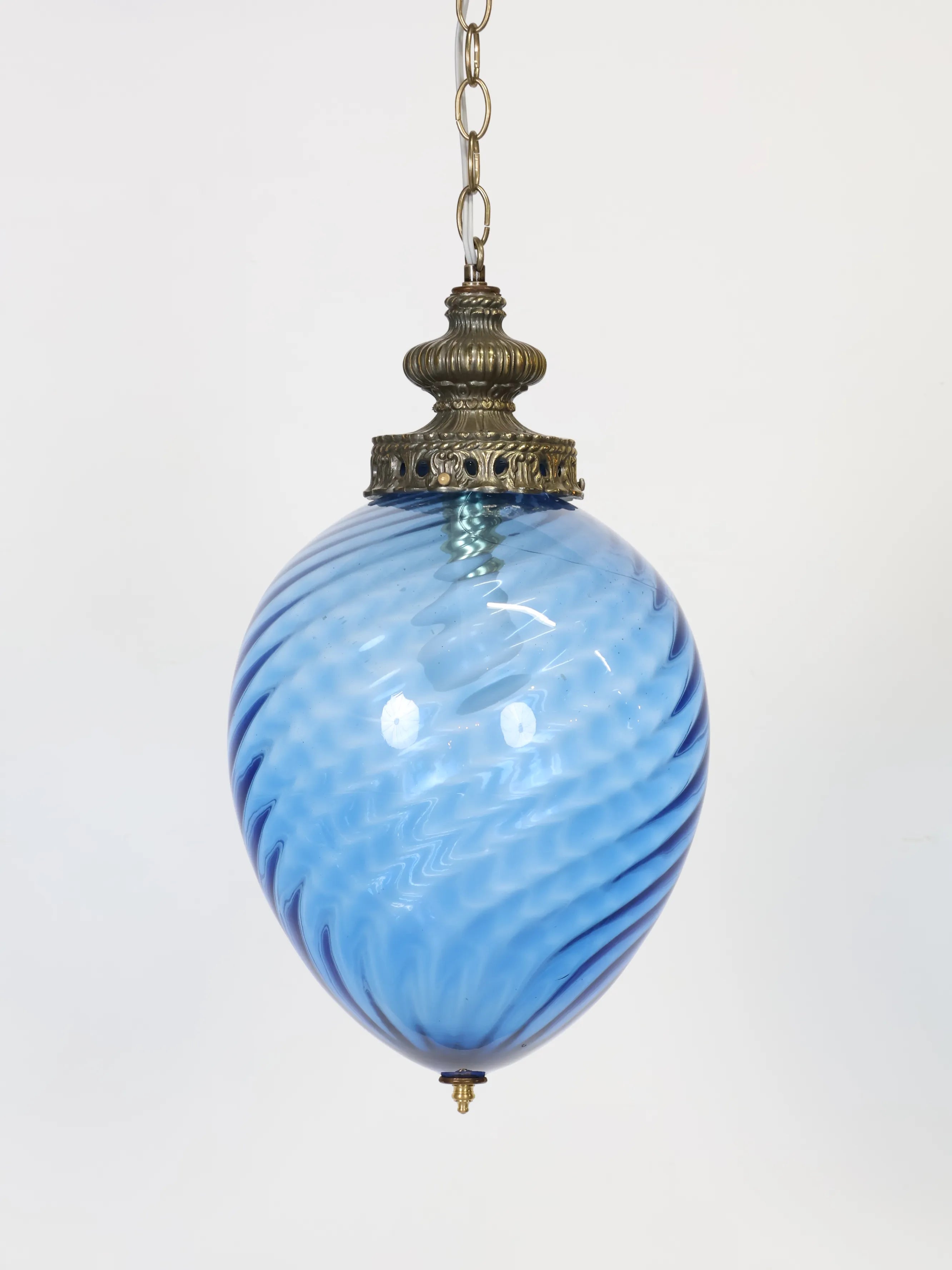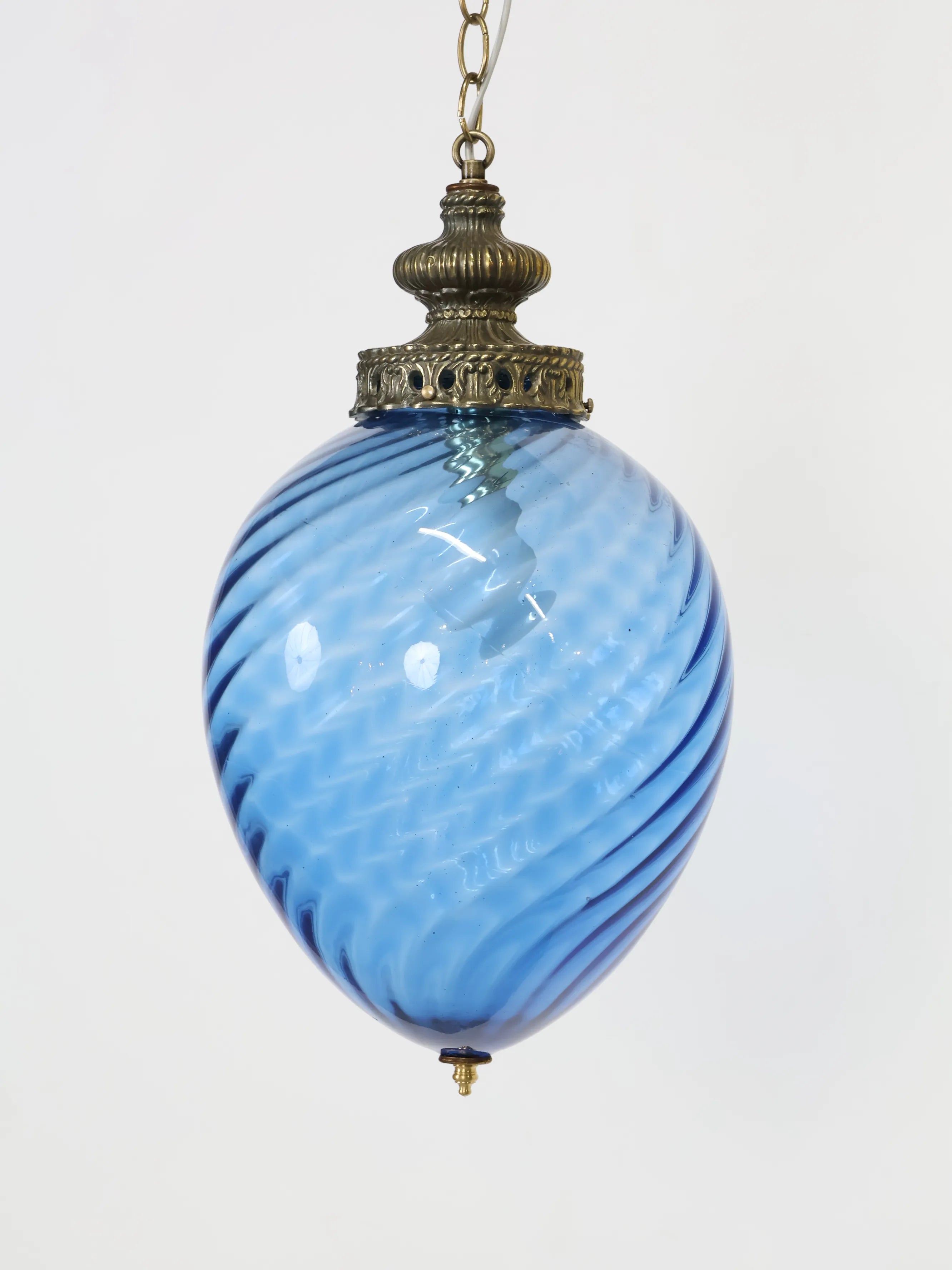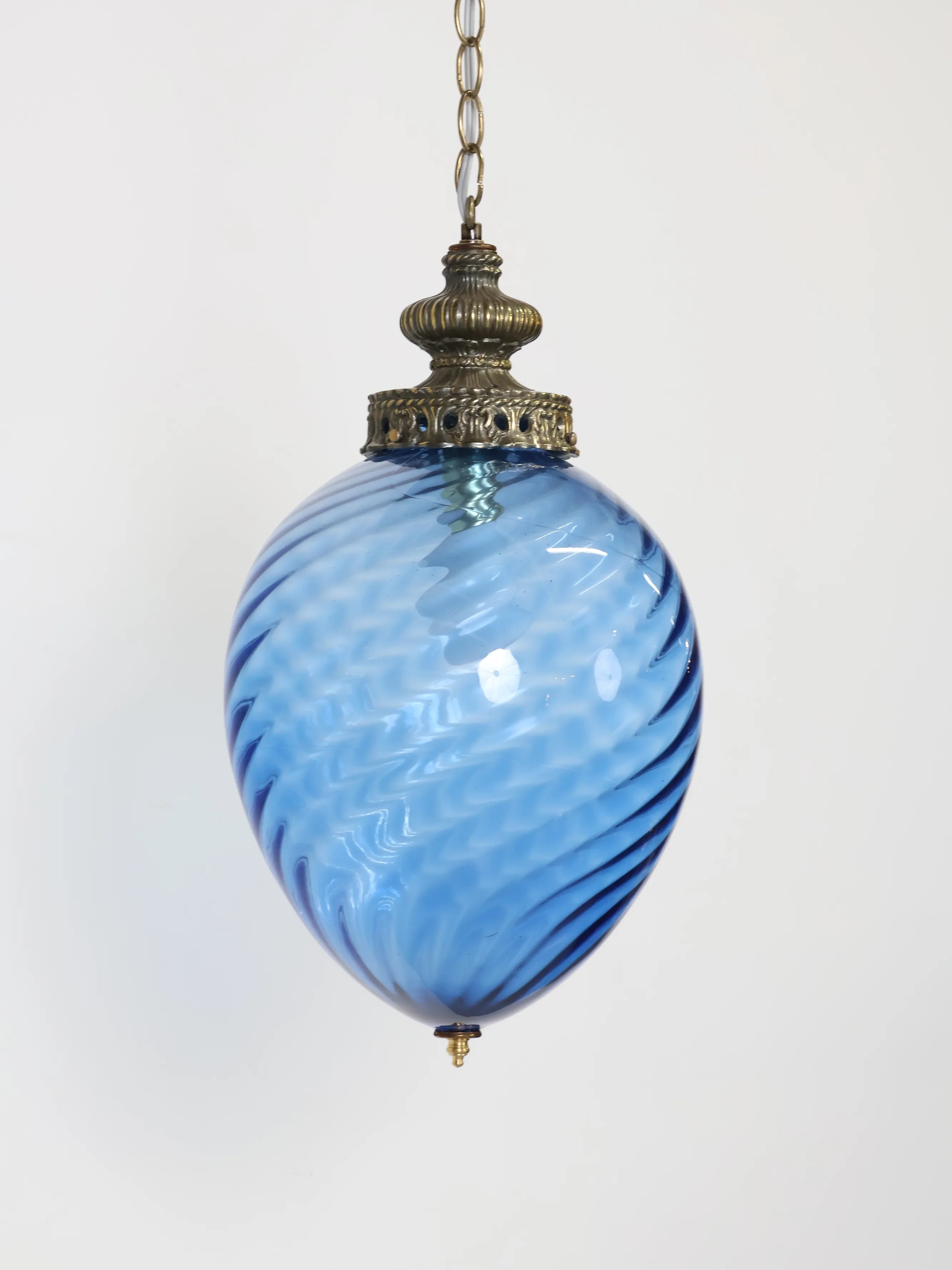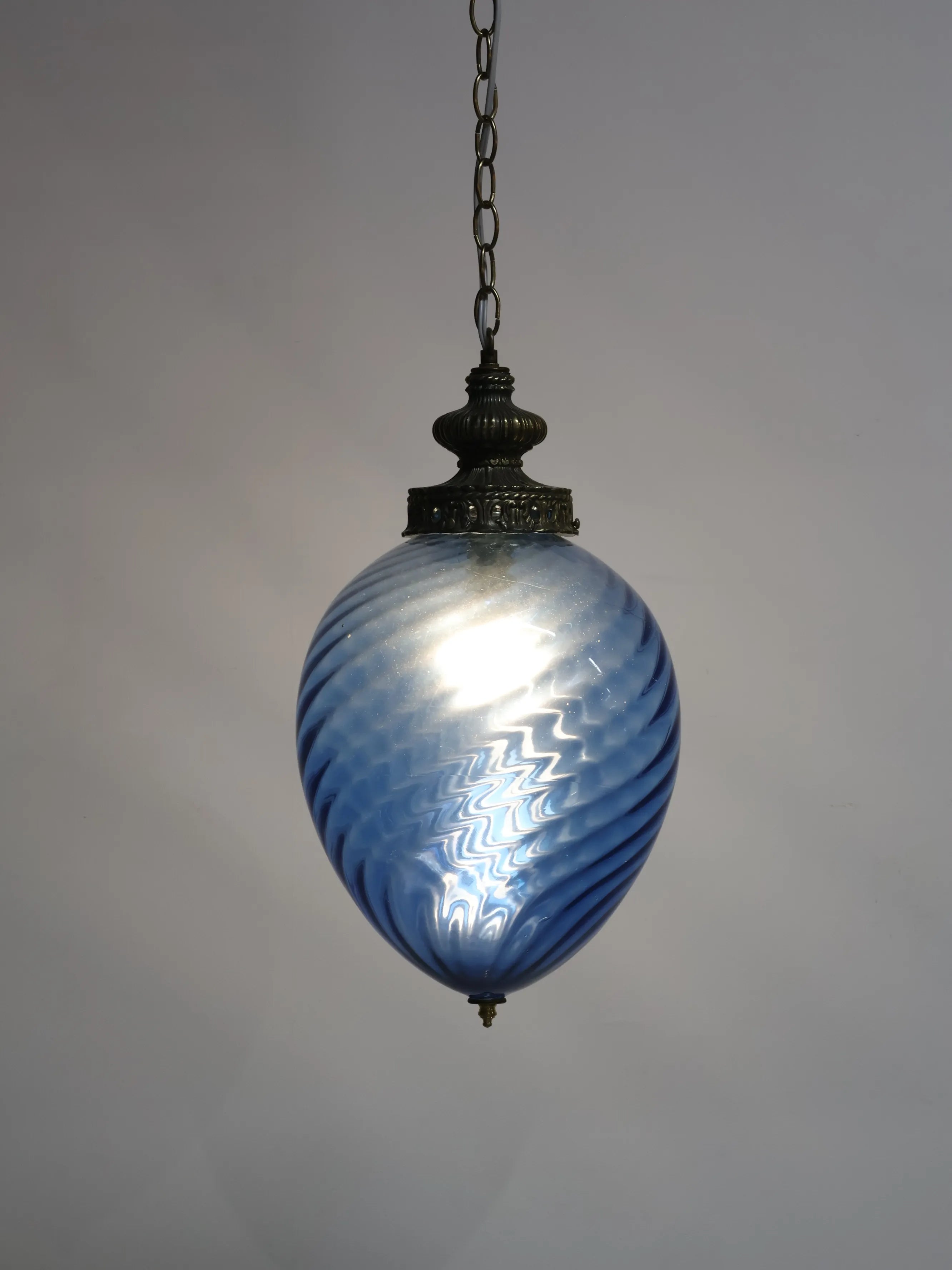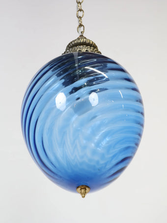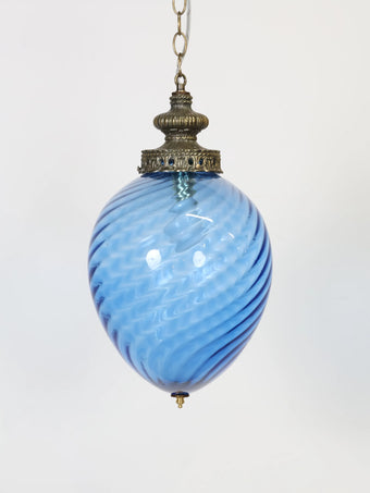 1960 - 70年代 ヴィンテージ ブルーガラス ペンダントランプ