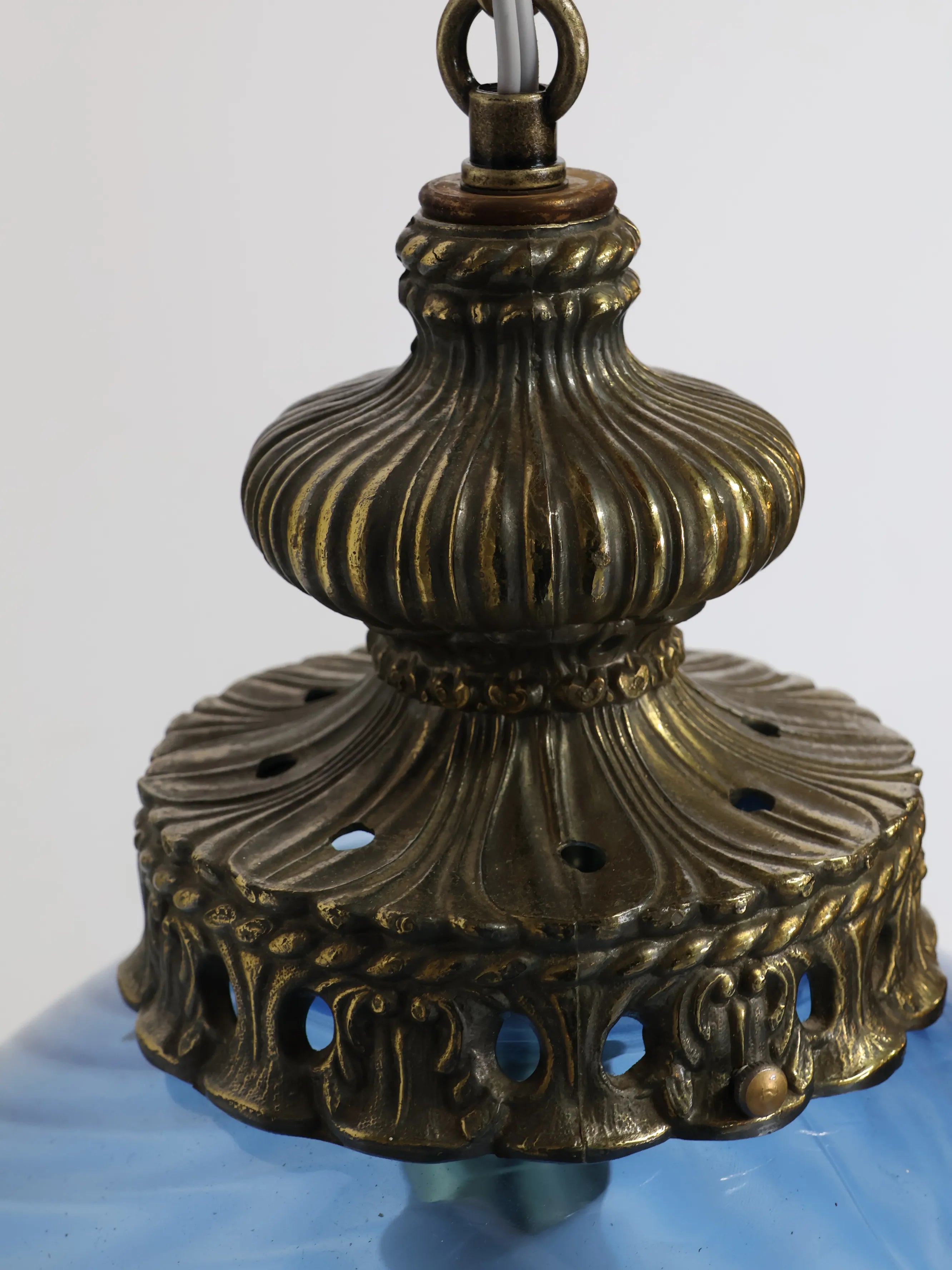 • 品名:ヴィンテージ ブルーガラス ペンダントランプ