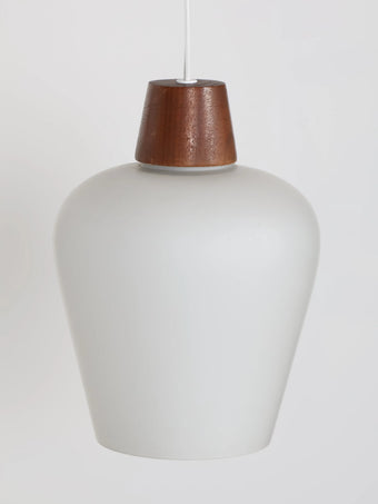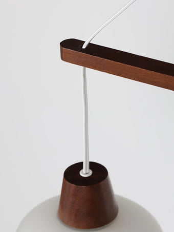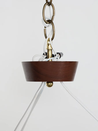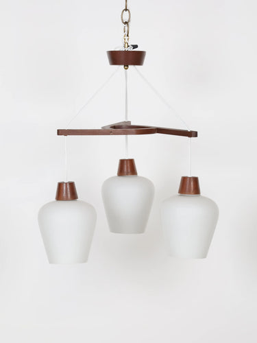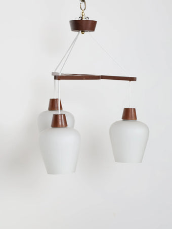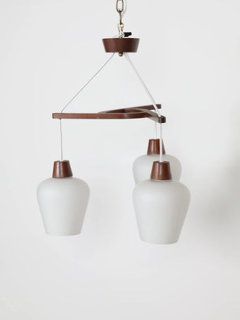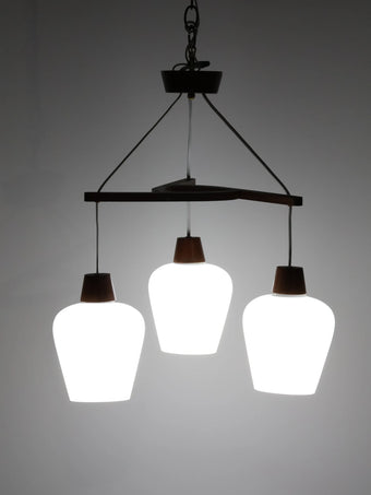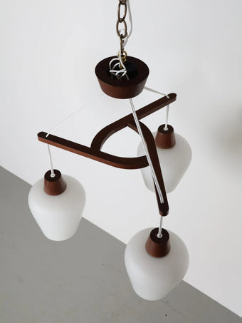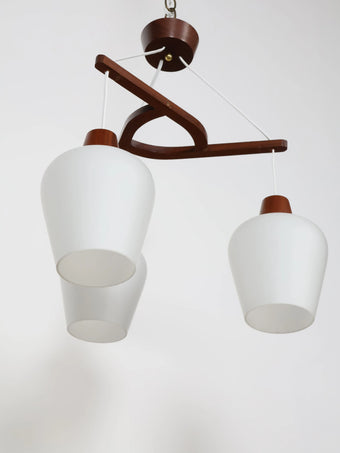 1970年代 ヴィンテージ チークフレーム 3灯 ホワイトガラスシェード シャンデリア