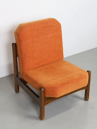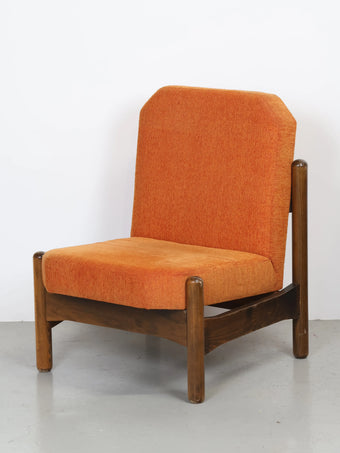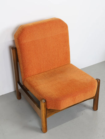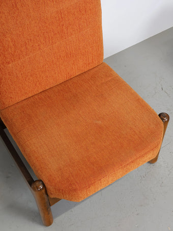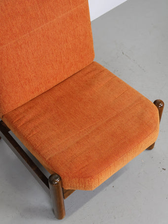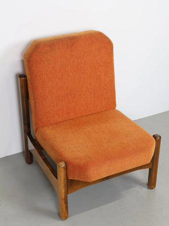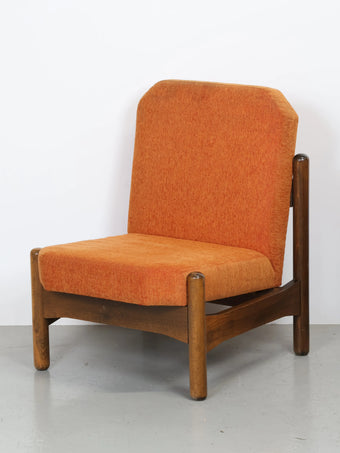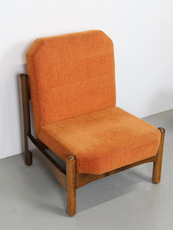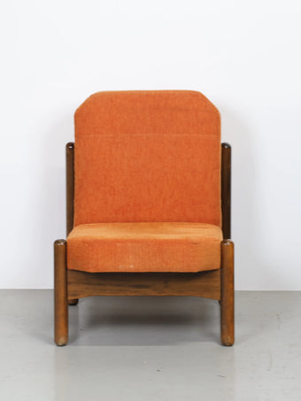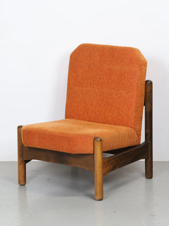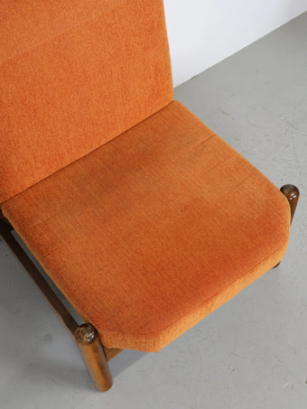 1970年代 ヴィンテージ ウッドベース ファブリック ラウンジチェア イス
