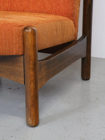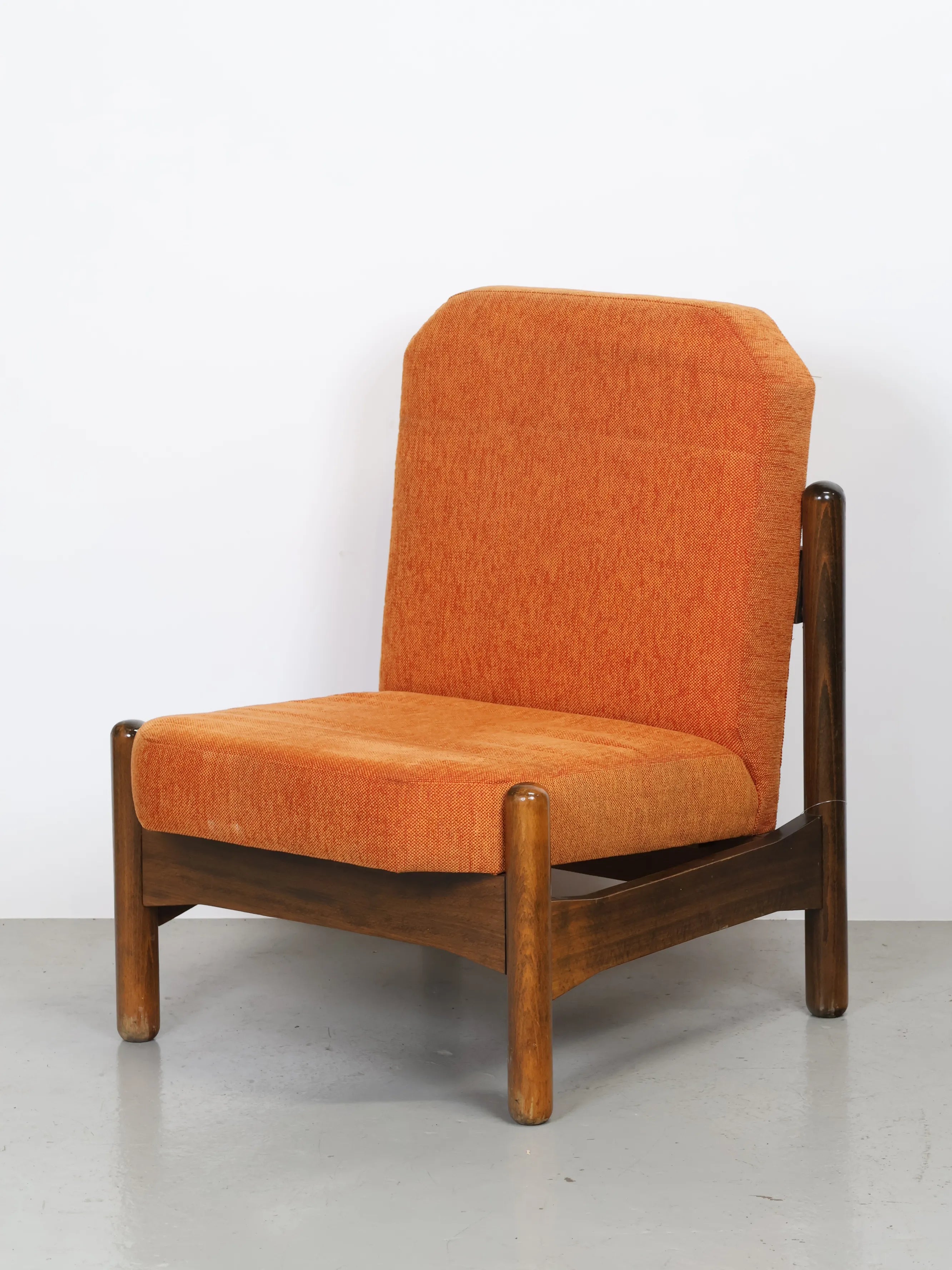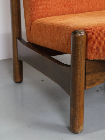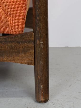 ハンガリーより買い付けました1970年代のウッドベースファブリックラウンジチェアです。