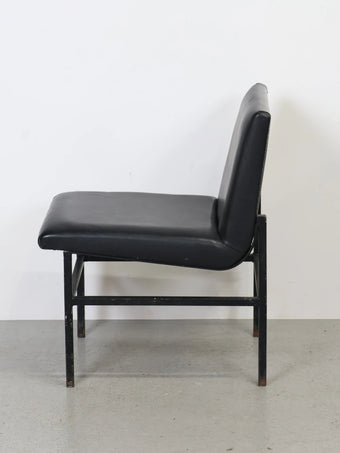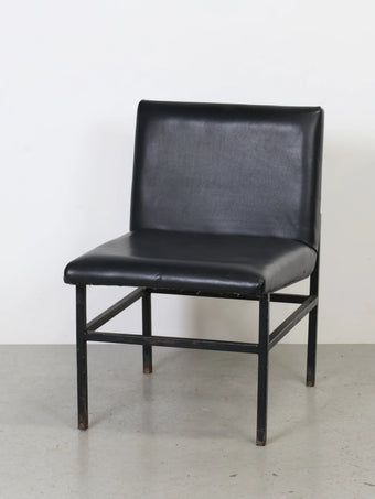 1960 - 70年代 ヴィンテージ ブラックビニールレザー ラウンジチェア メタルフレーム ダイニングチェア ミッドセンチュリー 椅子