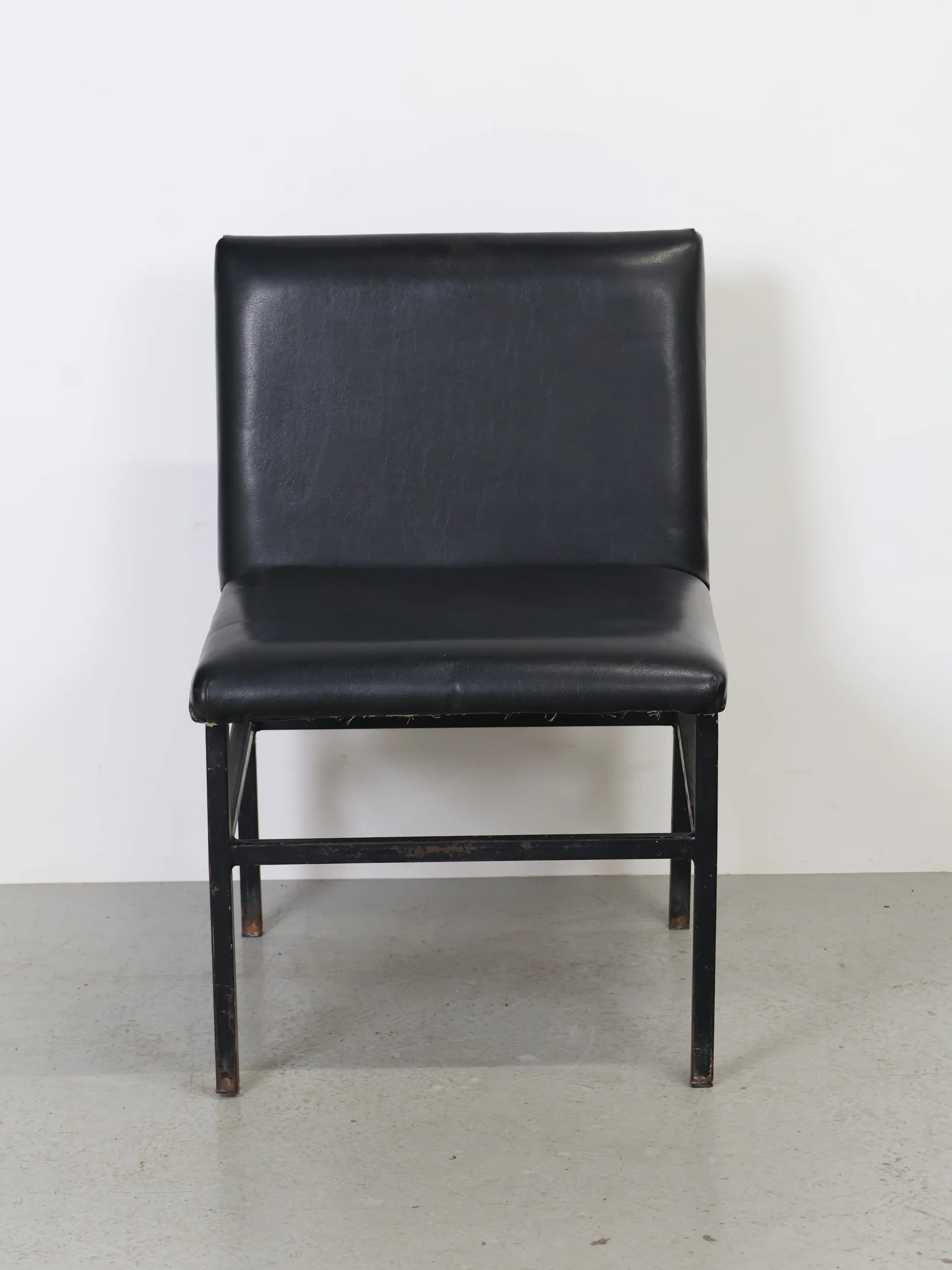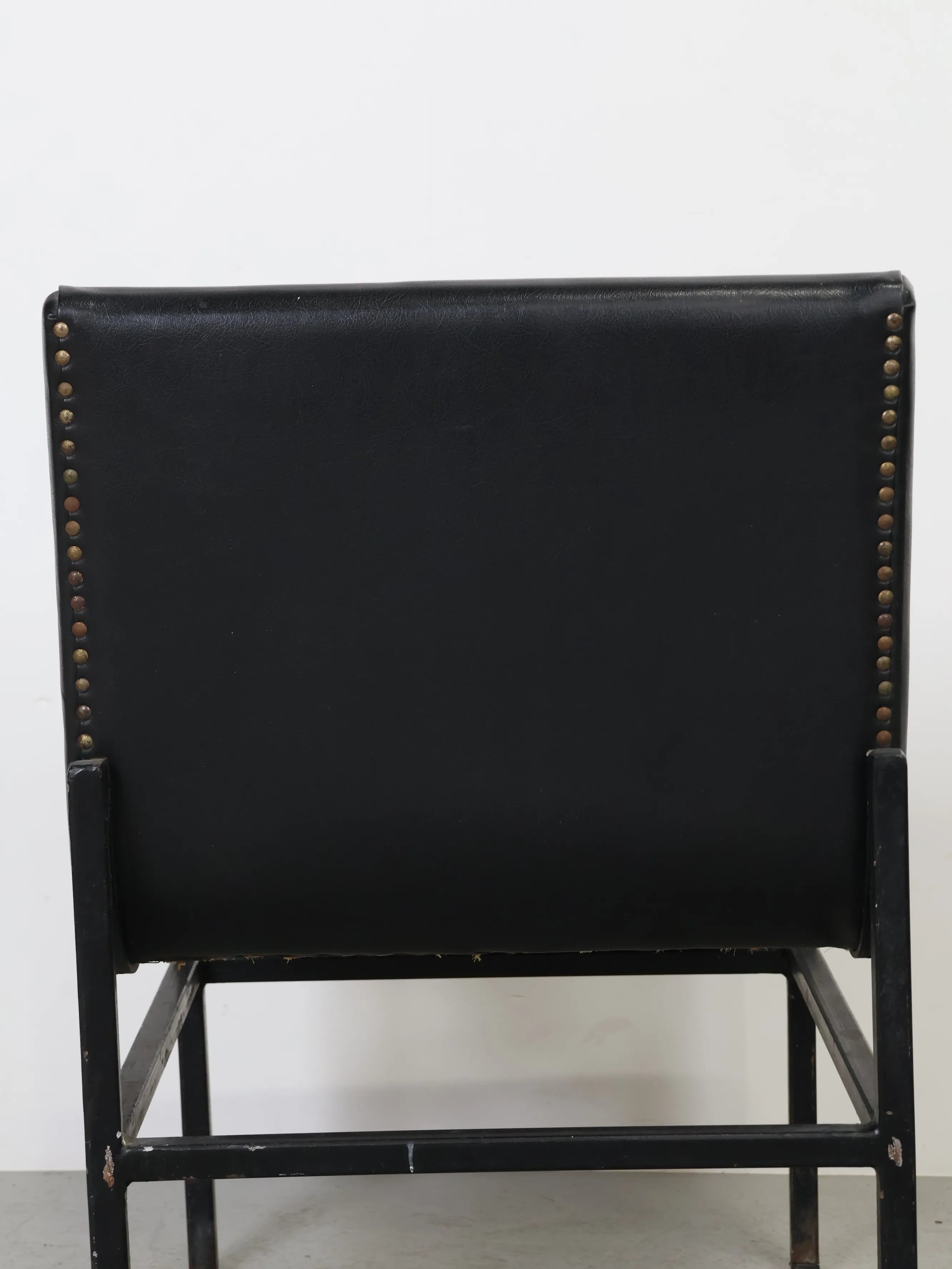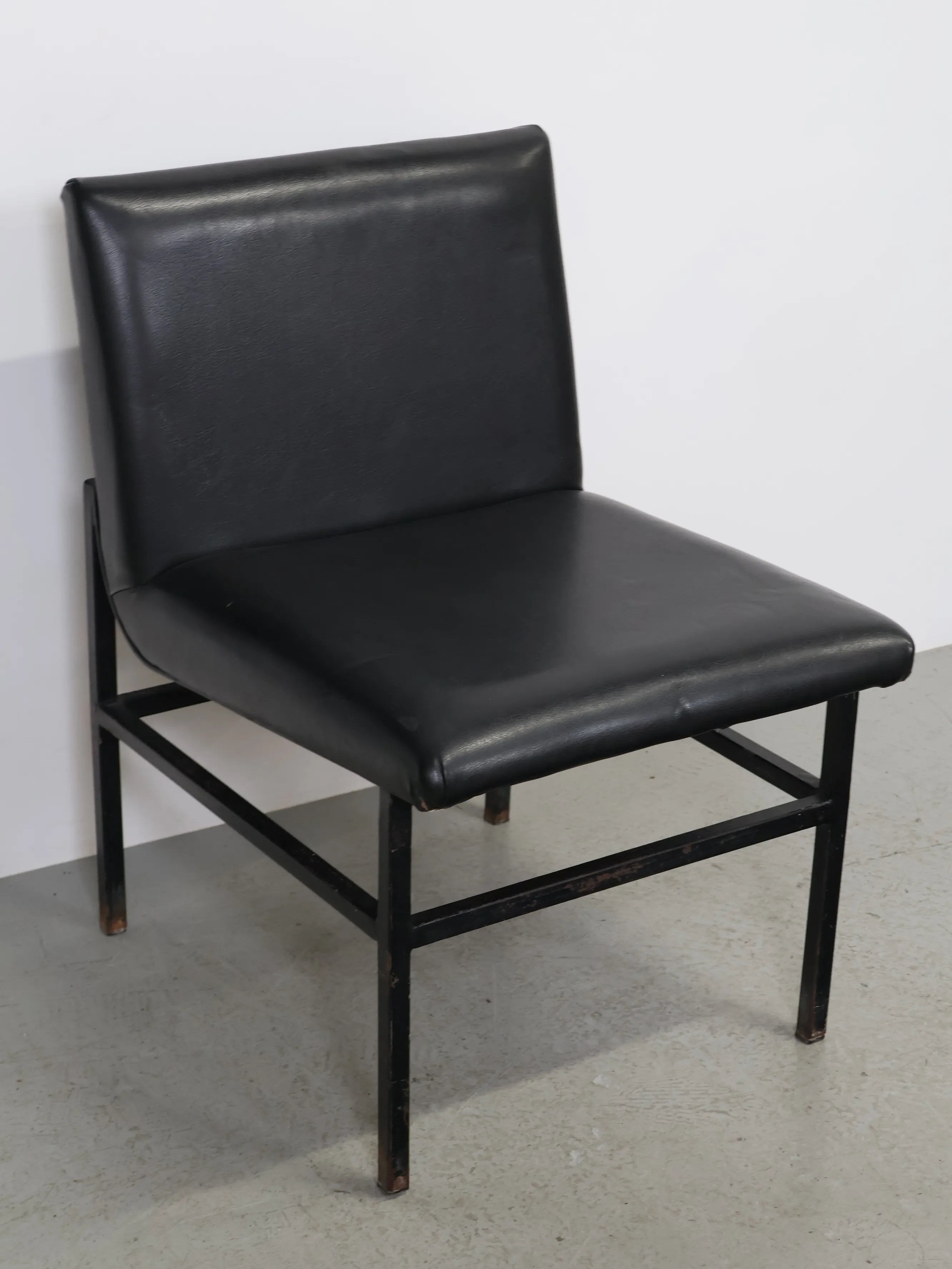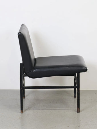 - 品名:ヴィンテージ ブラックビニールレザー ラウンジチェア メタルフレーム ダイニングチェア ミッドセンチュリー 椅子