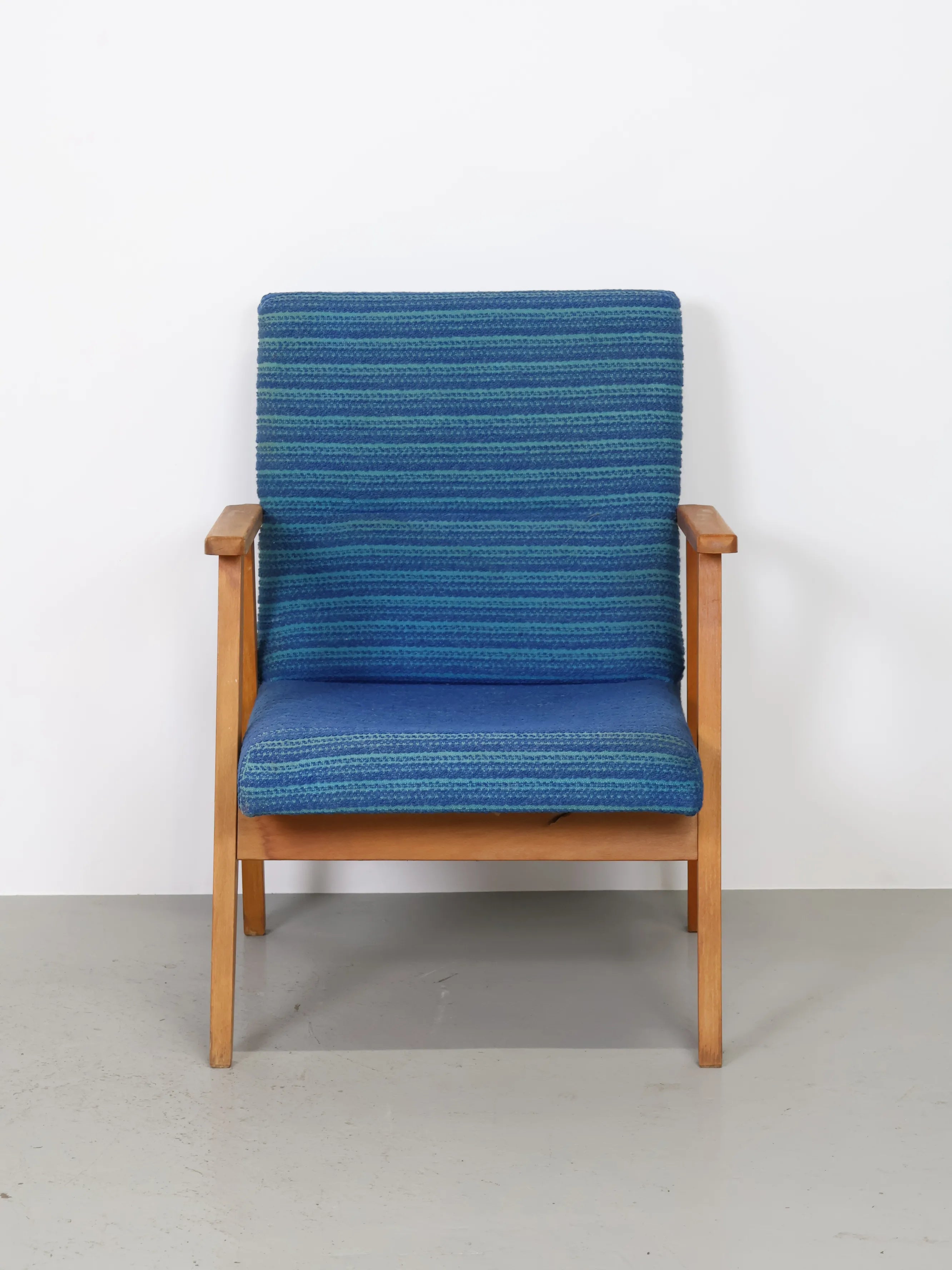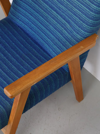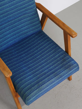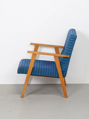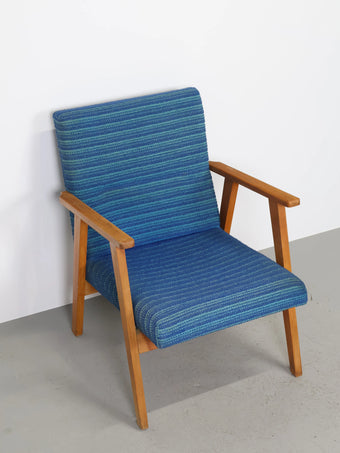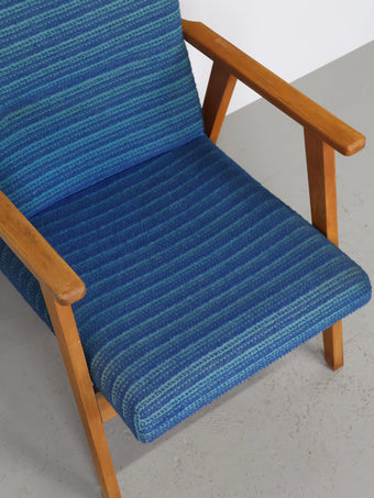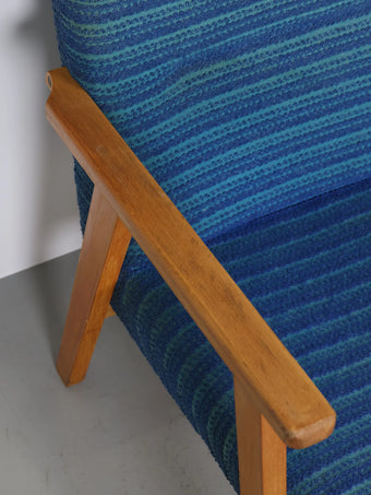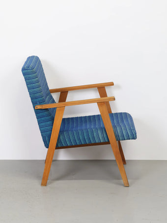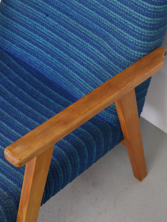 ハンガリーより買い付けました1960年代-70年代のブルーファブリックイージーチェアです。