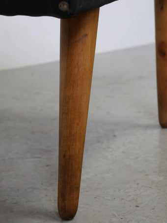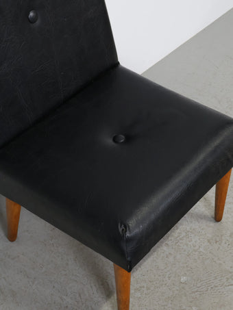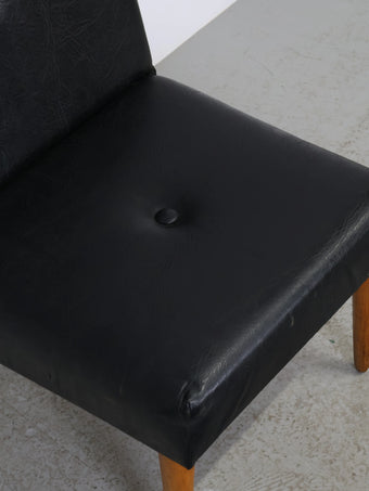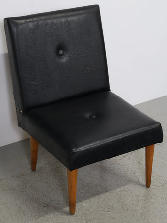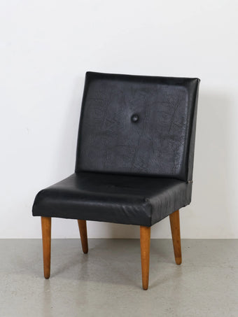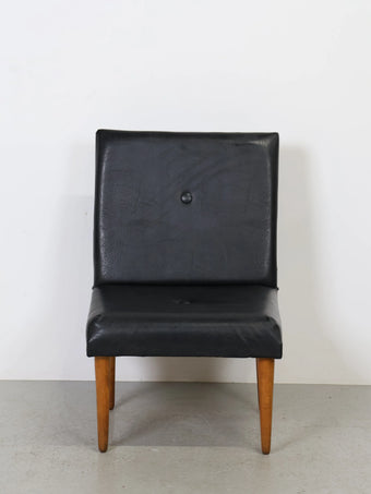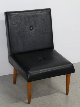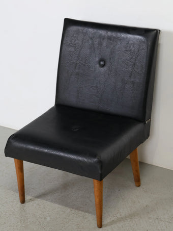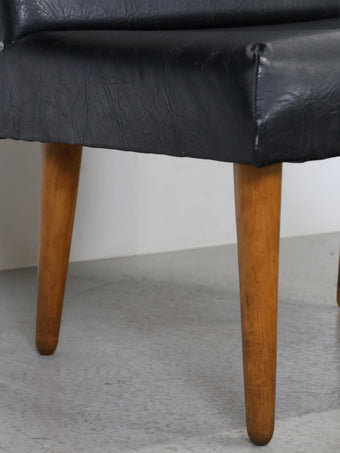 ハンガリーより買い付けました、ブラックのビニールレザーと、ナチュラルなウッドレッグのコントラストが印象的な1960-70年代頃のヴィンテージラウンジチェア。
