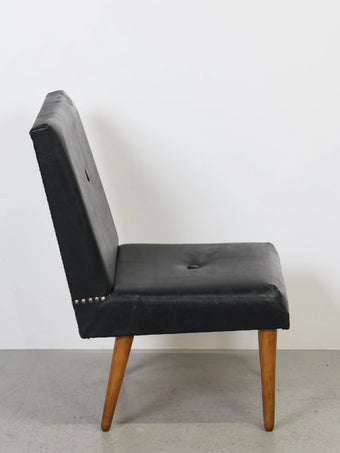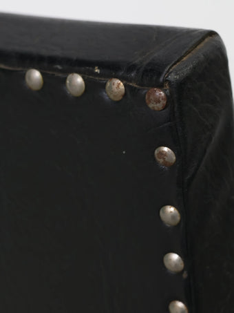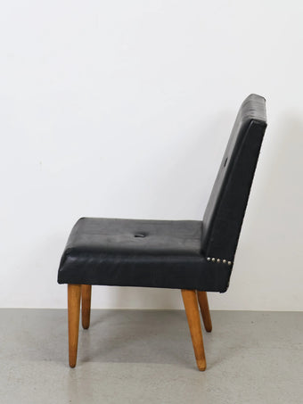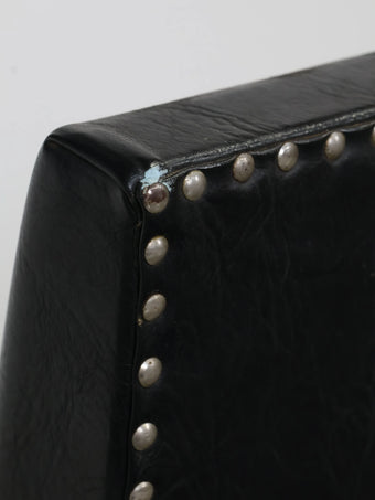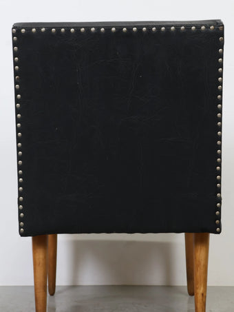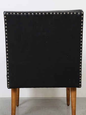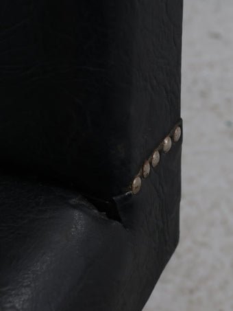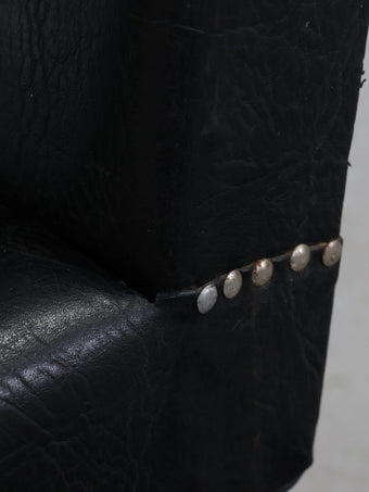 1960 - 70年代 ヴィンテージ ラウンジチェア ブラックビニール ウッドフレーム 木製 スタッズ装飾 ミッドセンチュリー レトロ