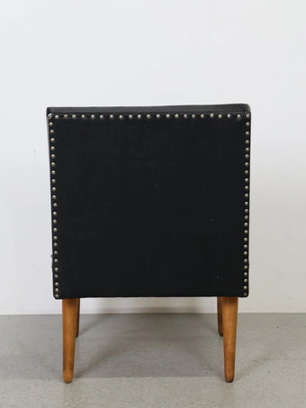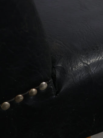 - 品名:ヴィンテージ ラウンジチェア ブラックビニール ウッドフレーム 木製 スタッズ装飾 ミッドセンチュリー レトロ