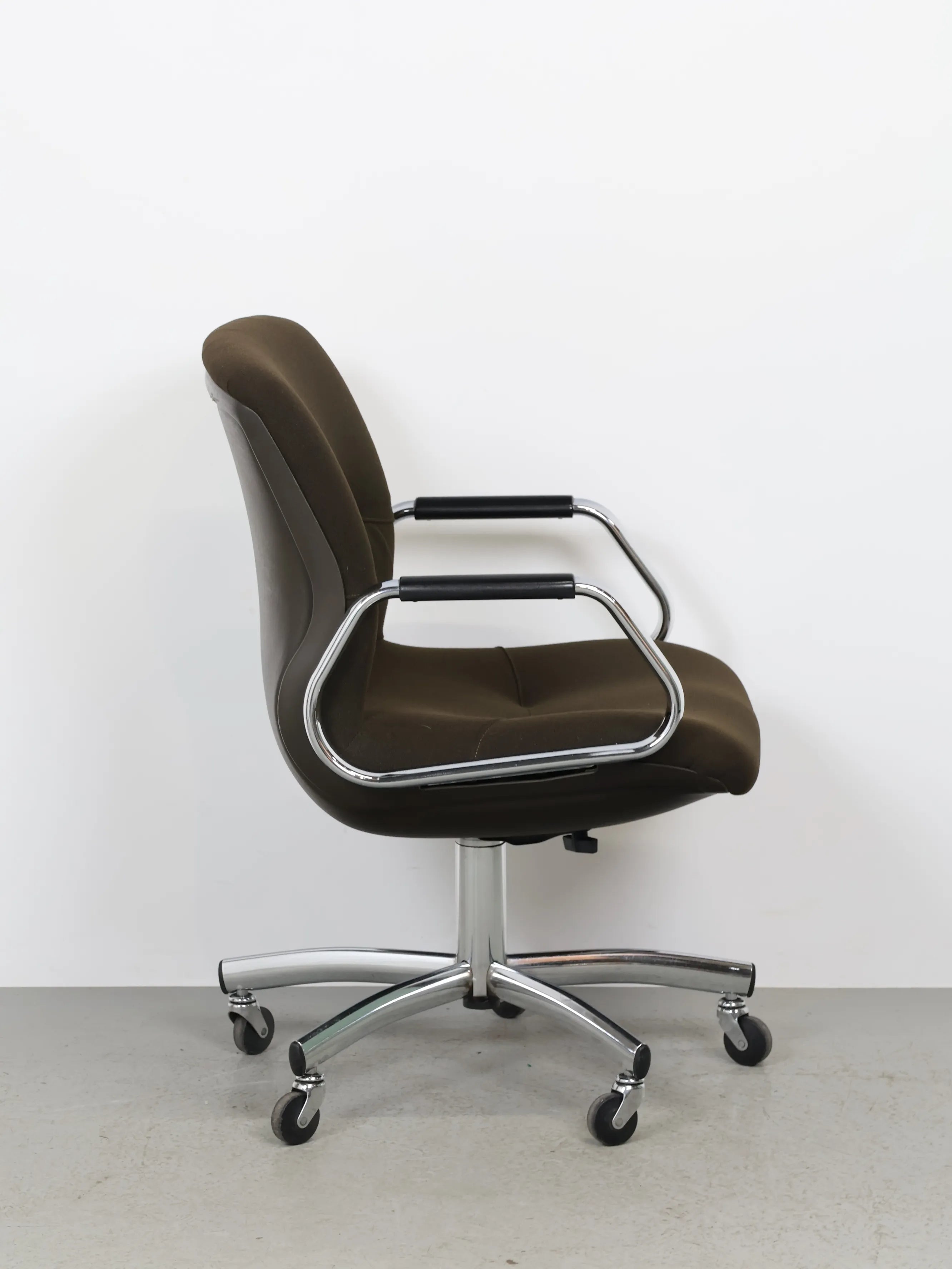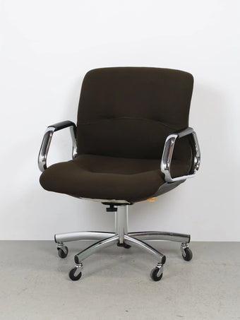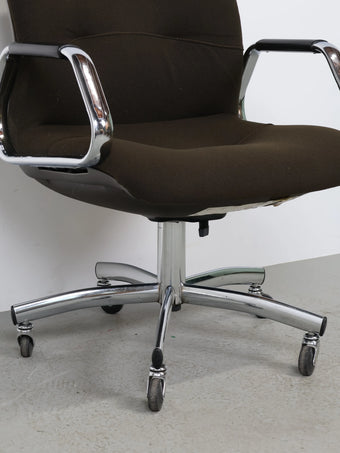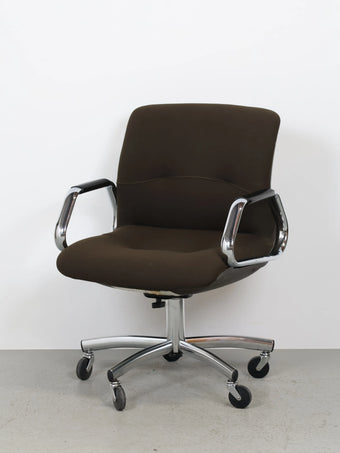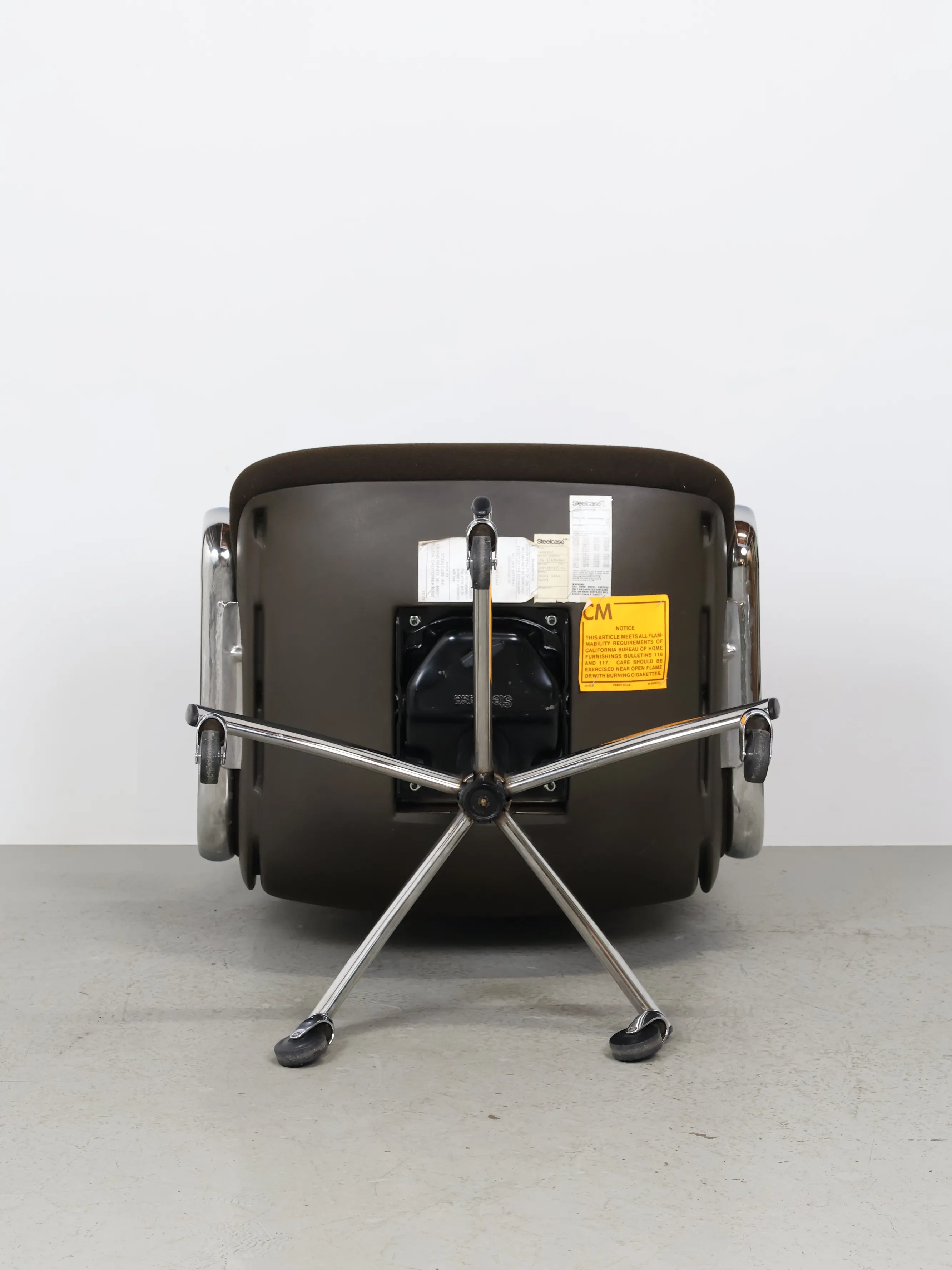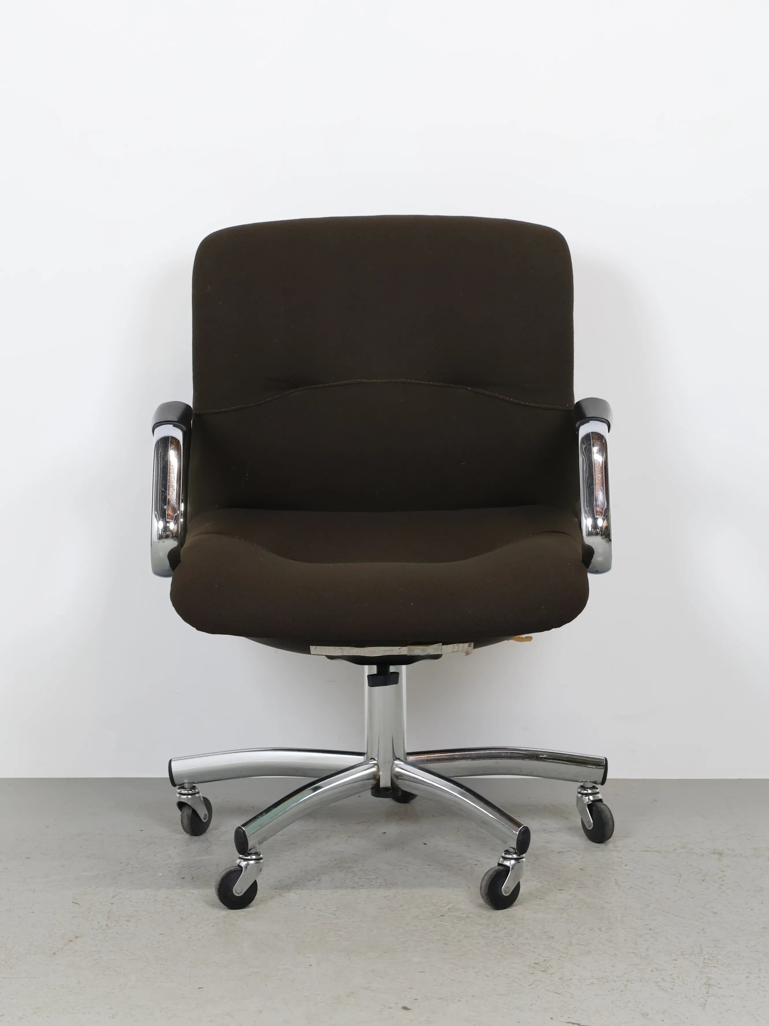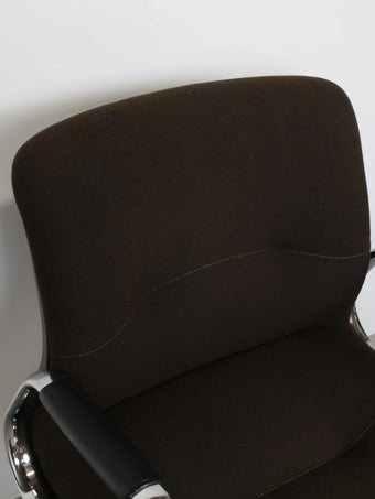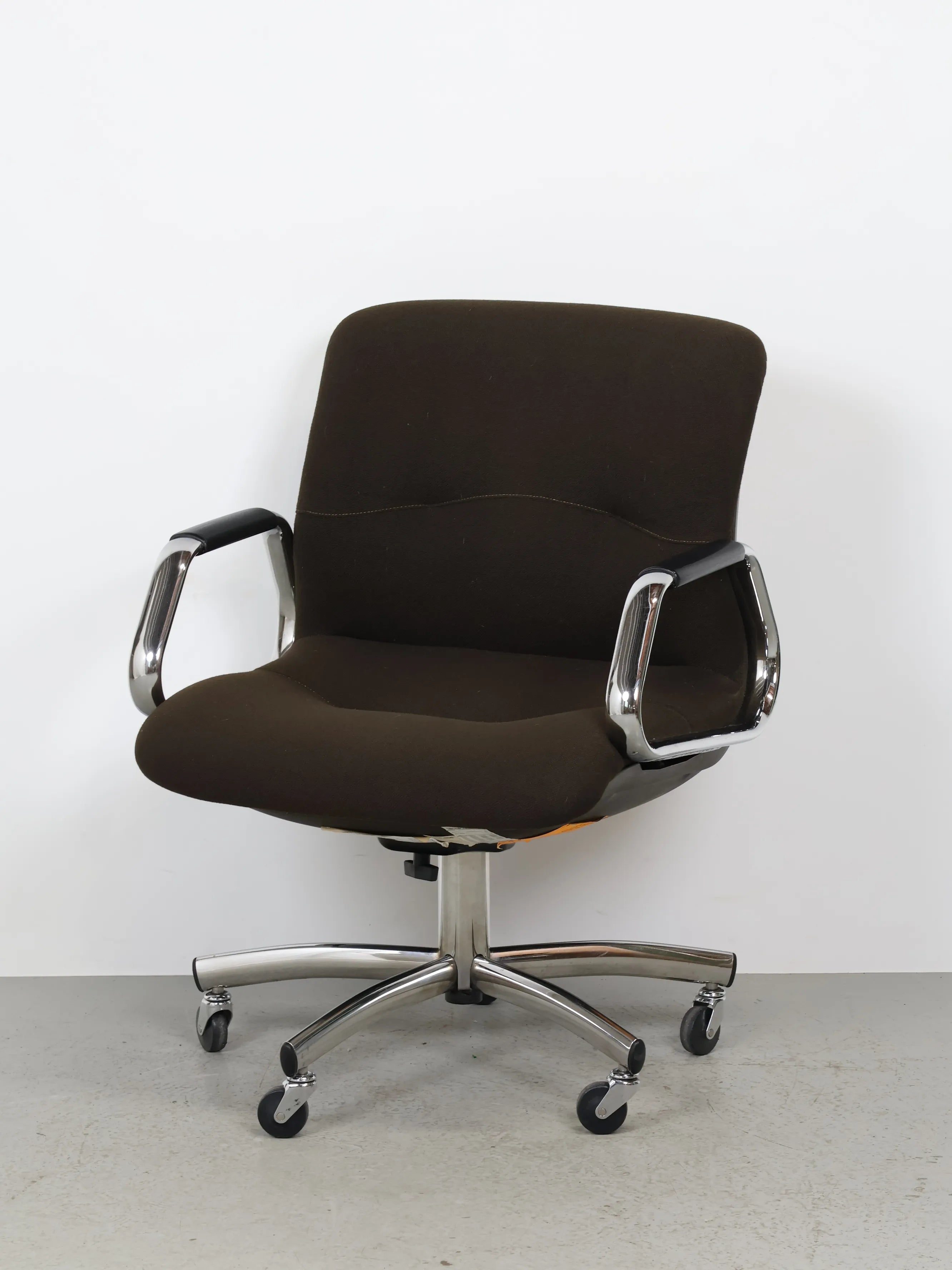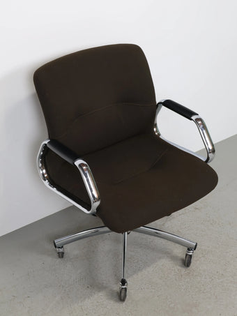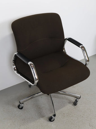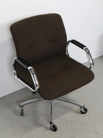 アメリカより買い付けました1980年代のSteelcase社製クロムベースブラウンファブリックアームチェアです。
