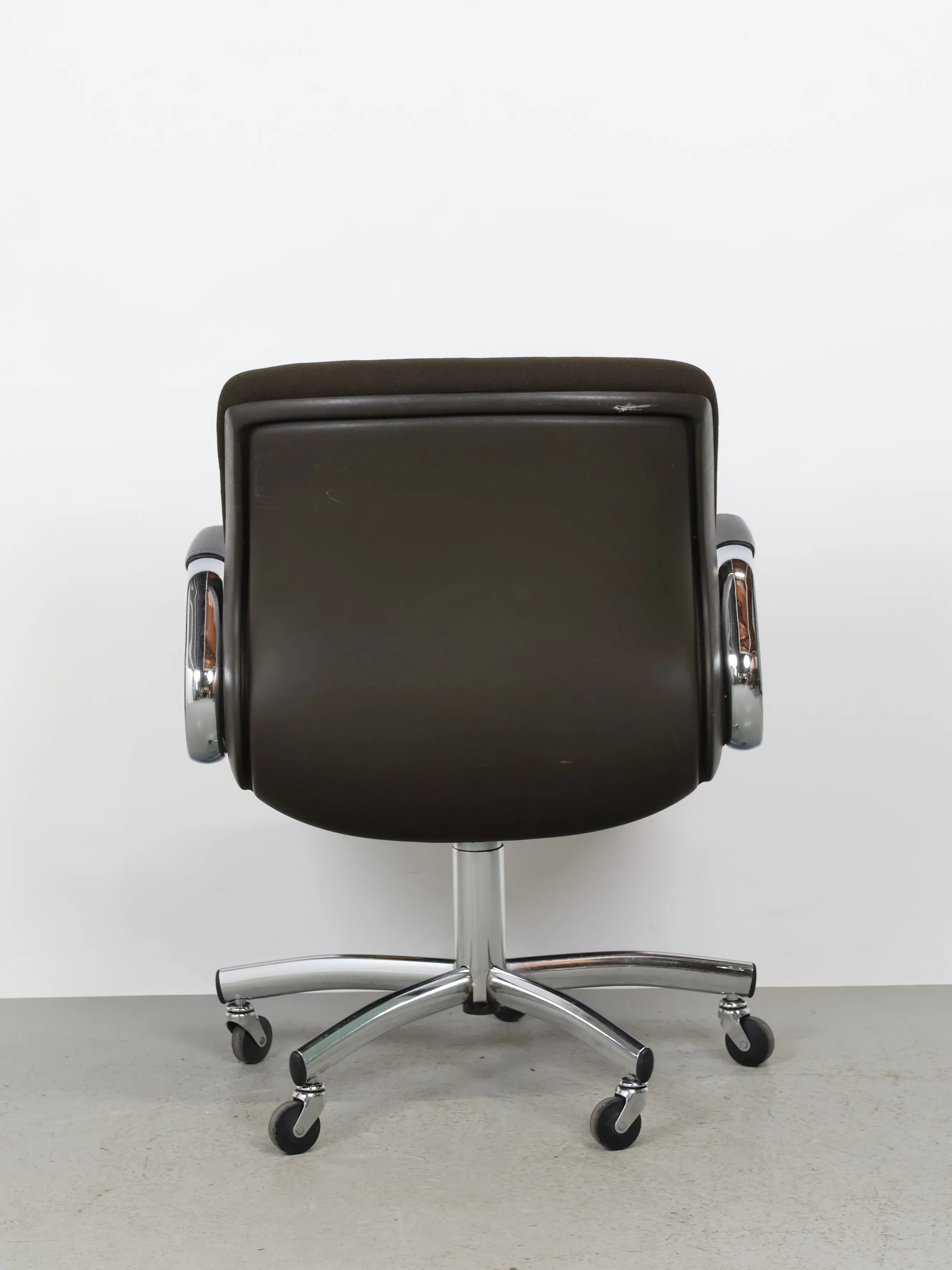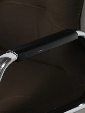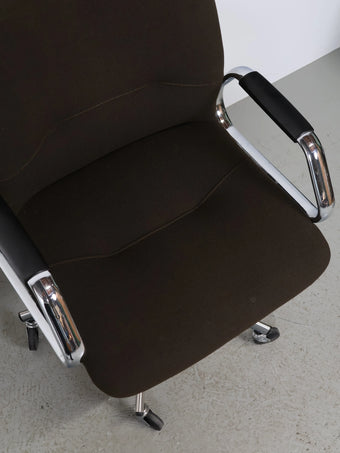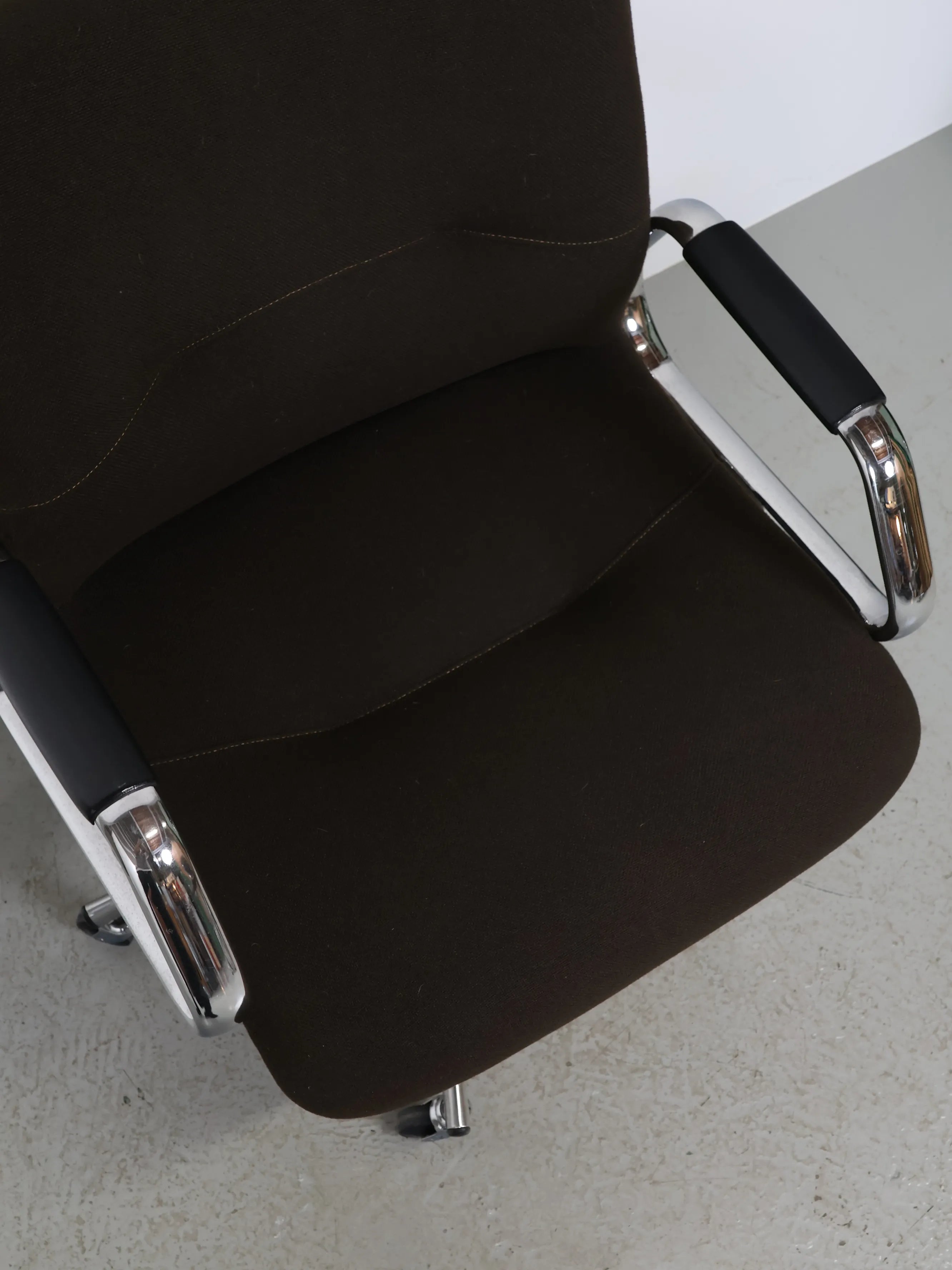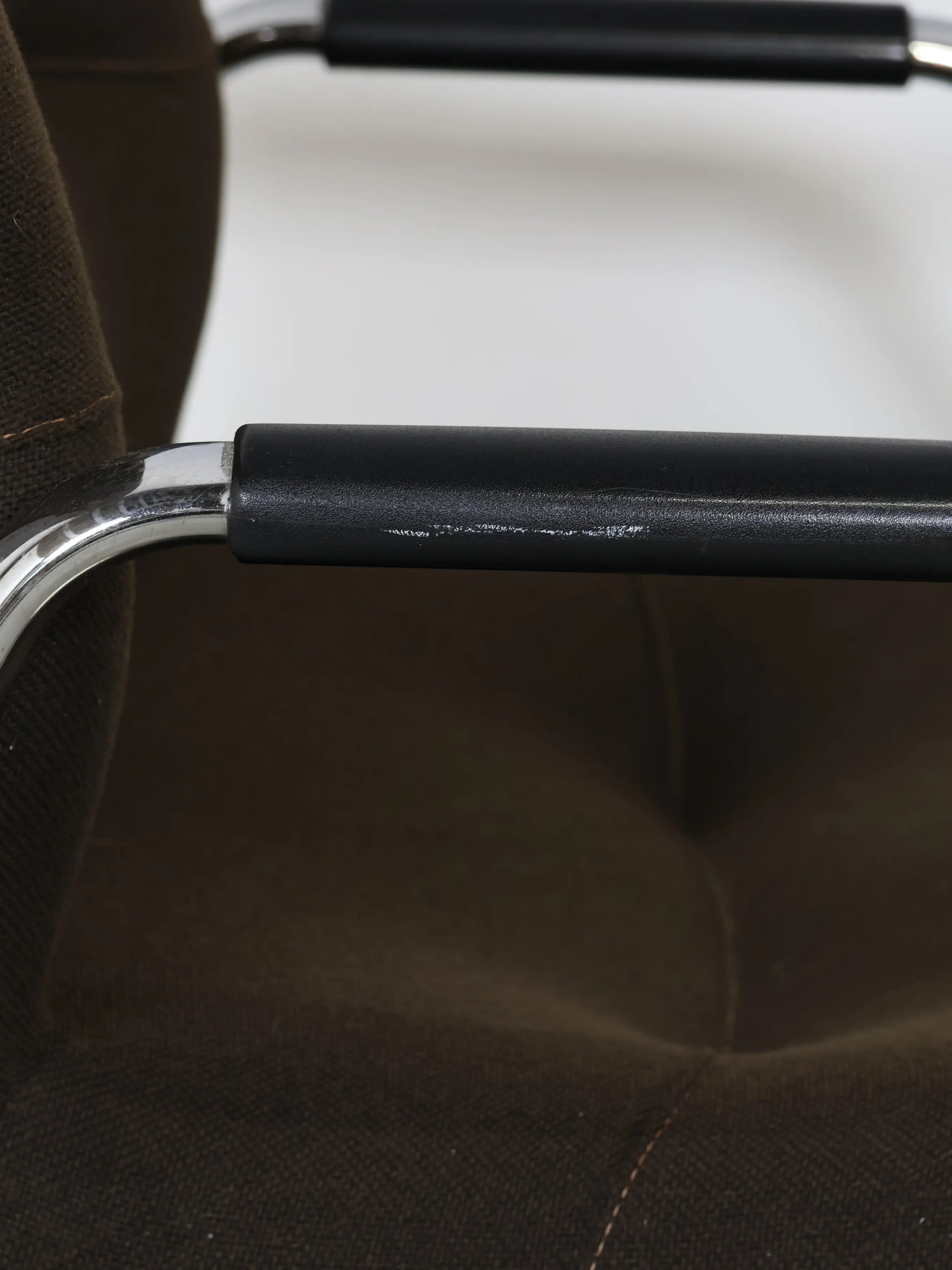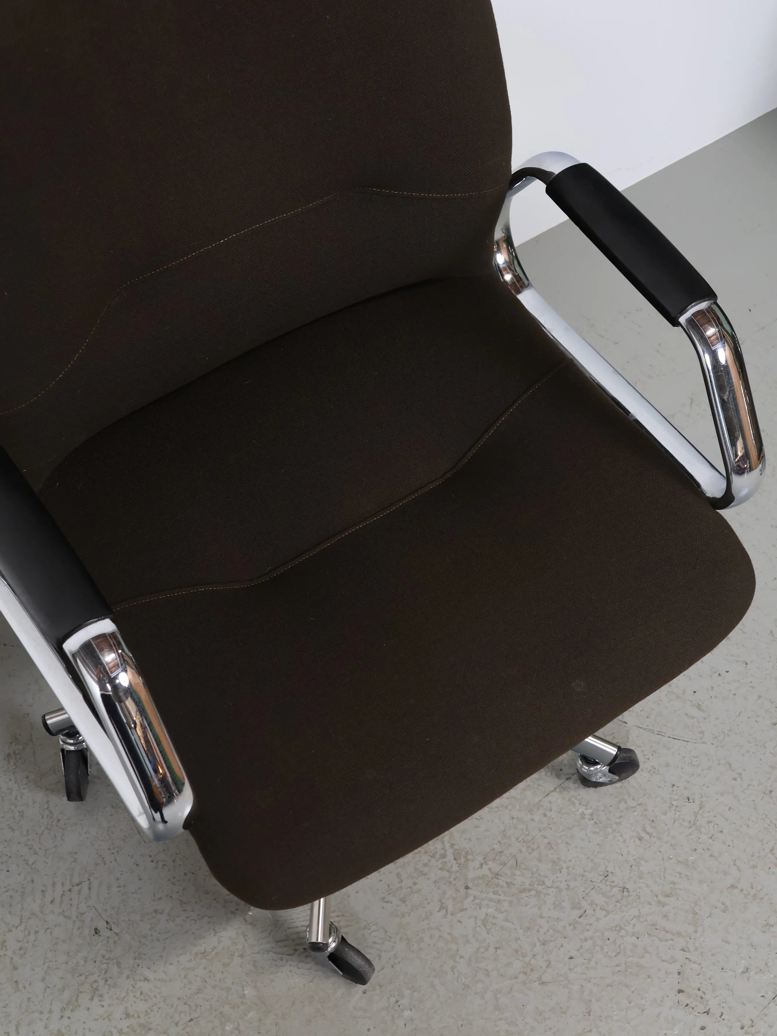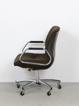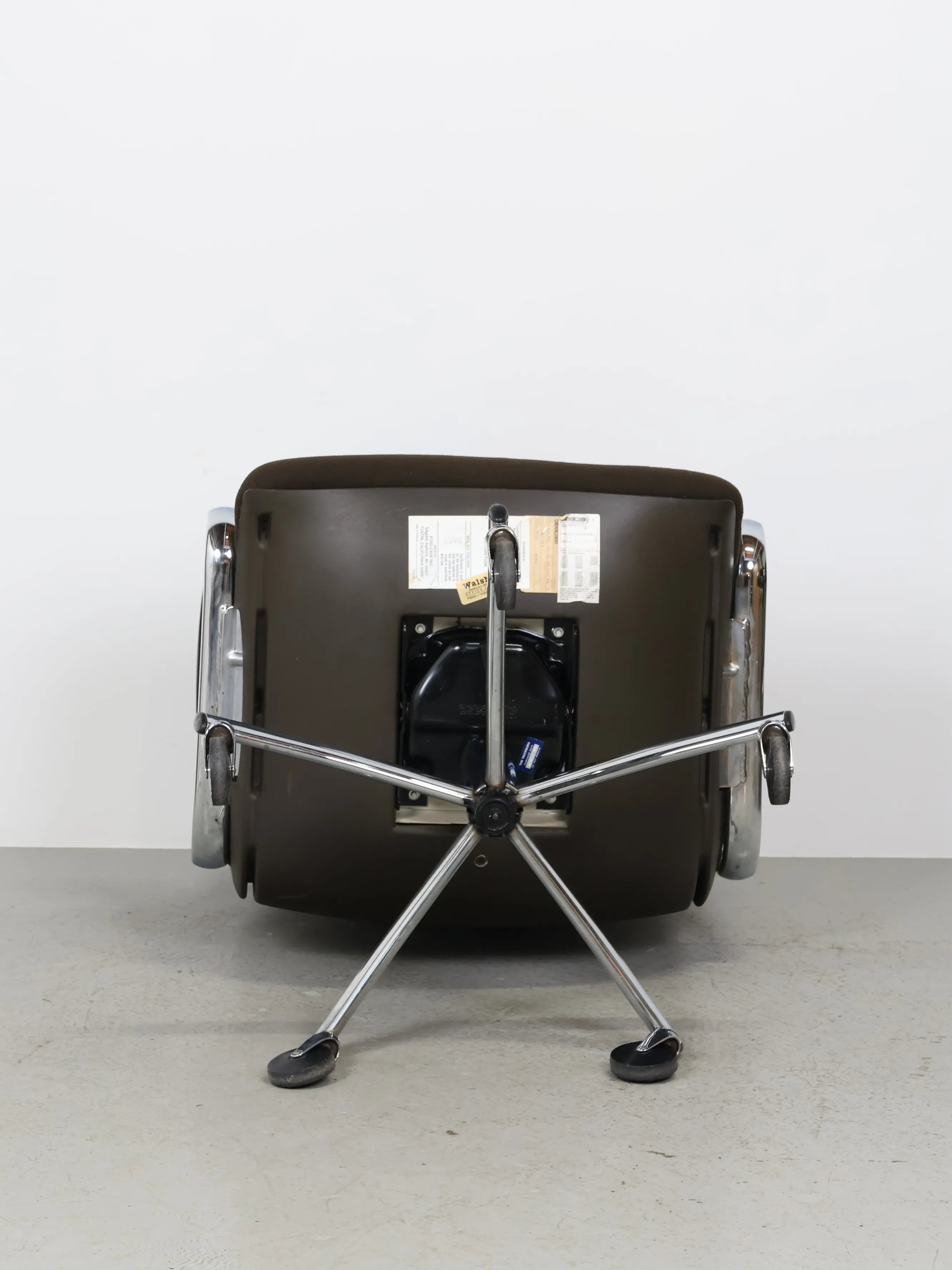 アメリカより買い付けました1980年代のSteelcase社製クロムベースブラウンファブリックアームチェアです。