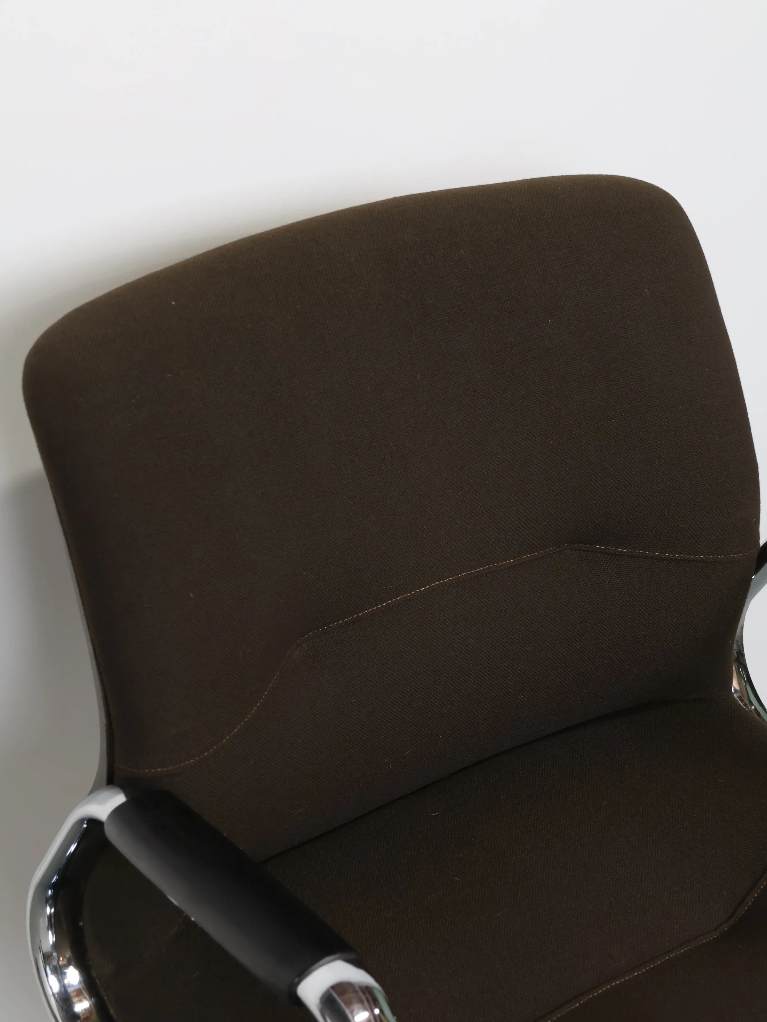 1980年代 Steelcase社製 ヴィンテージ クロムベース ブラウンファブリック アームチェア