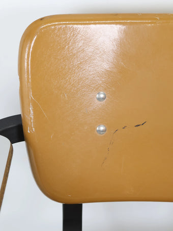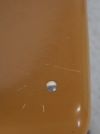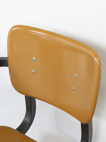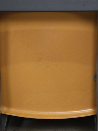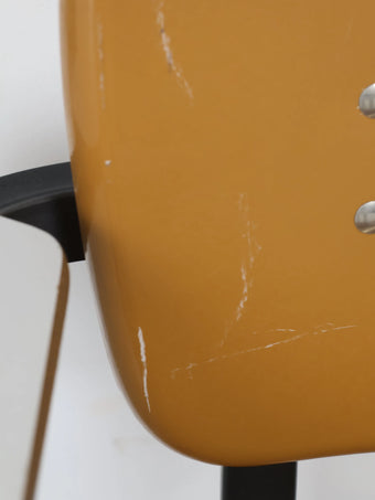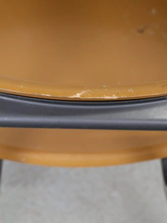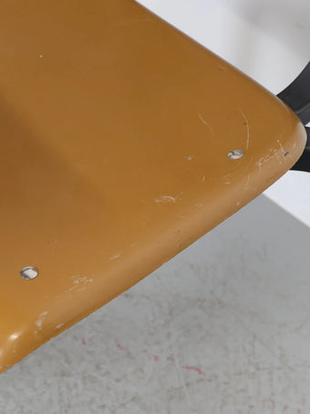 座面と背面はマスタードのプラスチックで、足にはブラックのメタル素材を使用。