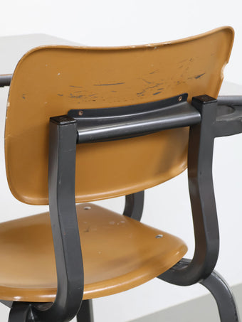 アメリカより買い付けました1960年代-70年代のAmerican Desk Manufacturing社製メタルベーススクルールチェアです。