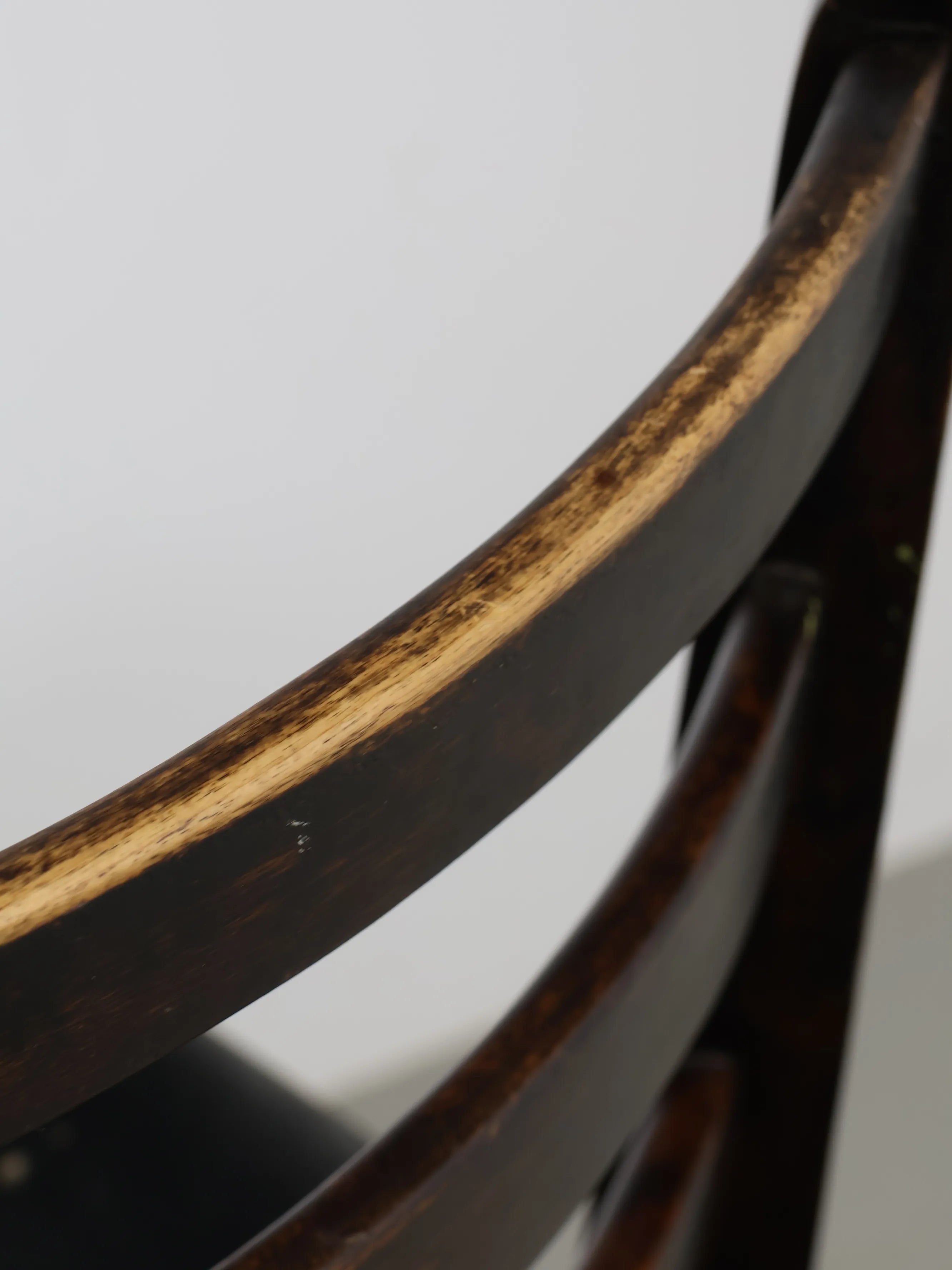 経年によりウッドの色味が抜けていたり、所々に傷が出来ておりそれが何とも言えない味わいになっている雰囲気抜群の1脚です。