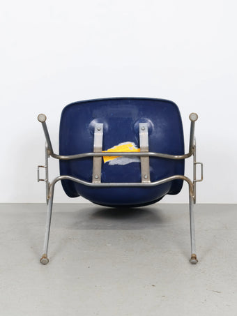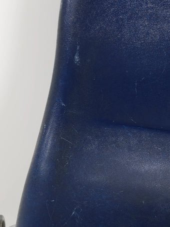 深みのあるネイビーブルーのシェルと、無骨で機能的なアイアンベースの組み合わせが魅力的な一脚。
