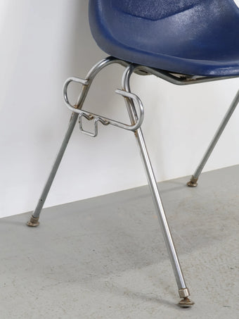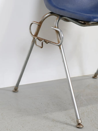1970年代 ヴィンテージ アイアンベース ブループラスチック シェルチェア イス