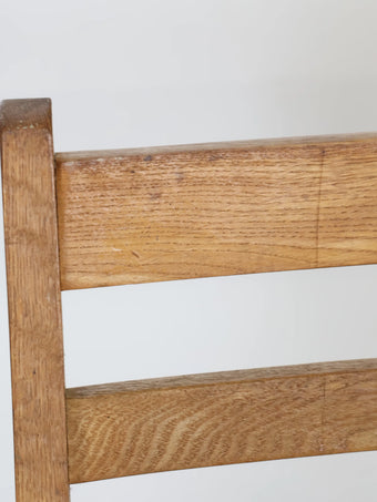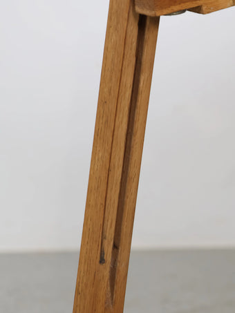 無垢材を使用した温かみのある質感と、直線的でミニマルなデザインが魅力の一脚。座面の接合部には木組みが施されており、シンプルながらもしっかりとした造りが感じられます。