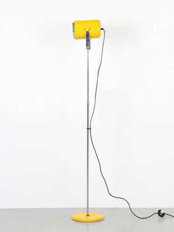 1970年代 ヴィンテージ イエロー & クロムベース スタイリッシュ フロアスポットランプ