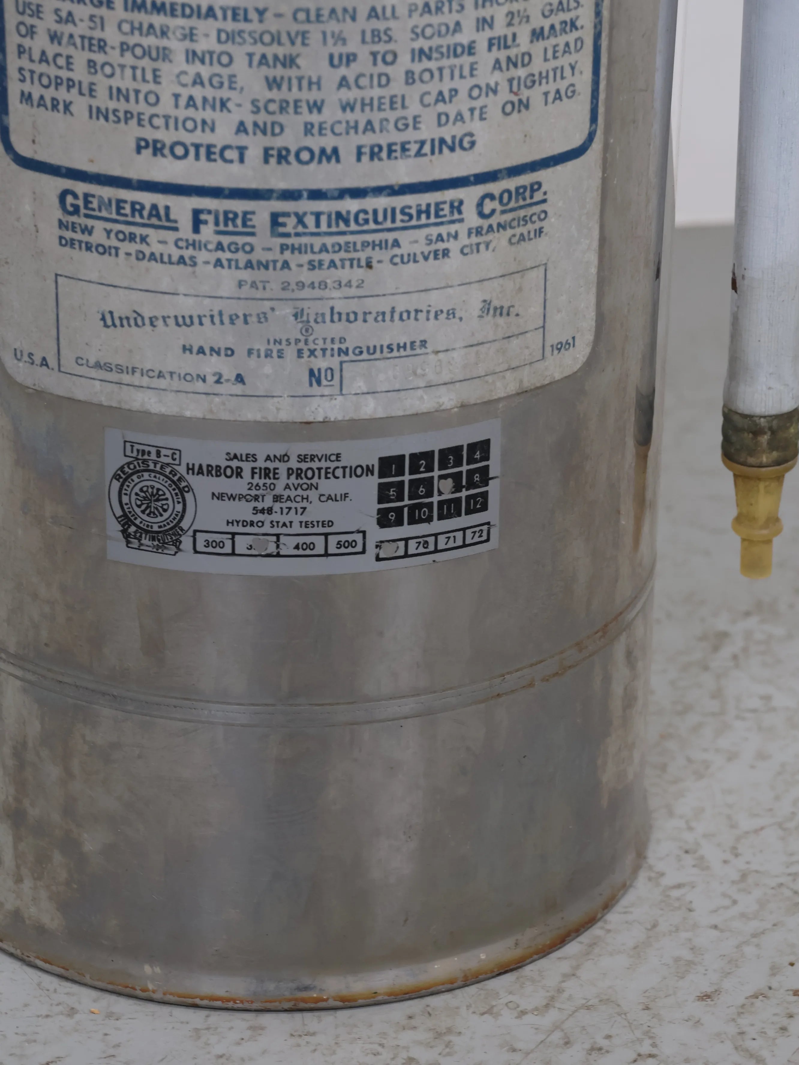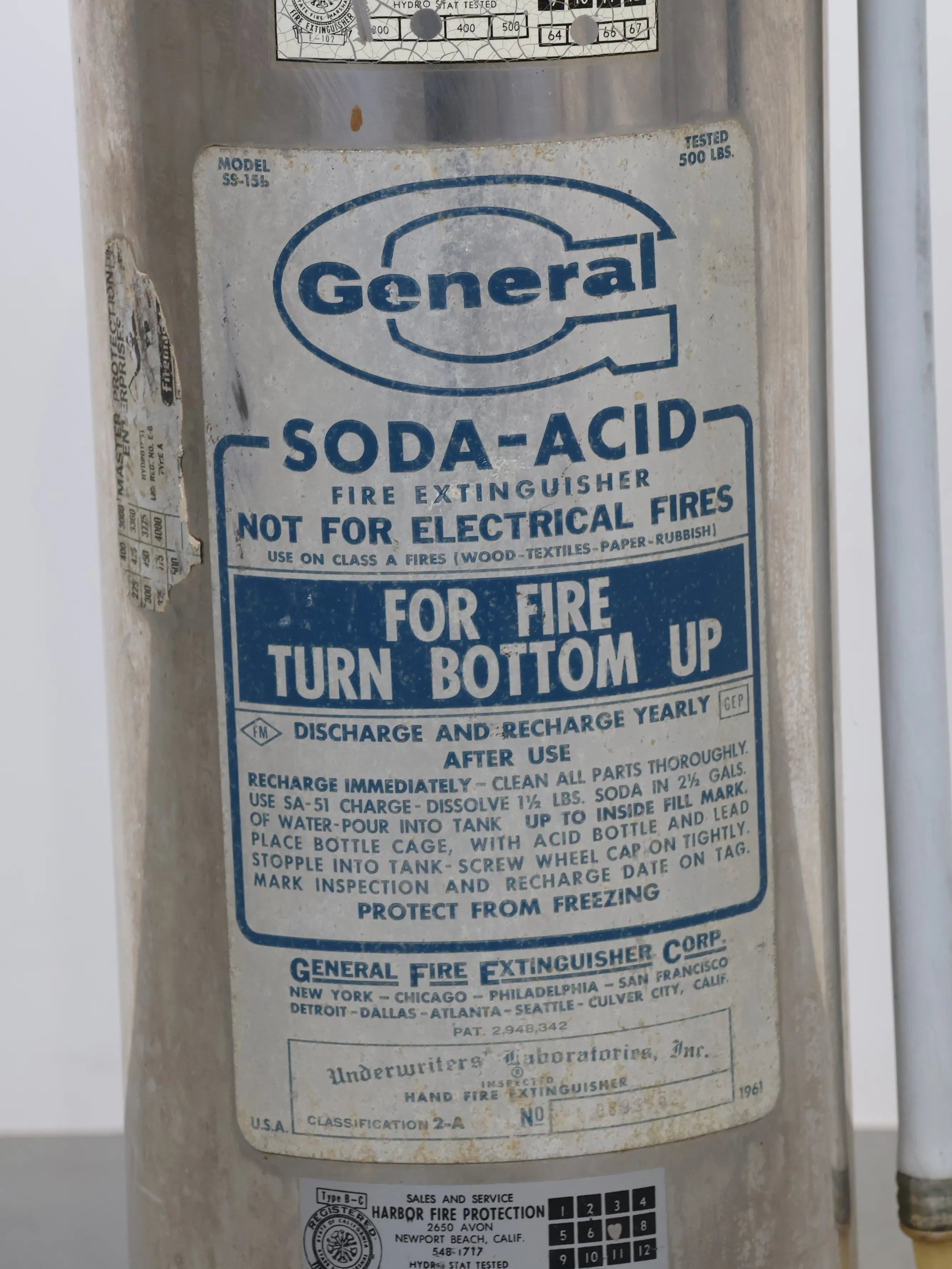 アメリカより買い付けました1960年代のGeneralメタルファイヤーエクスティングイッシャーです。