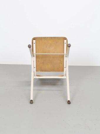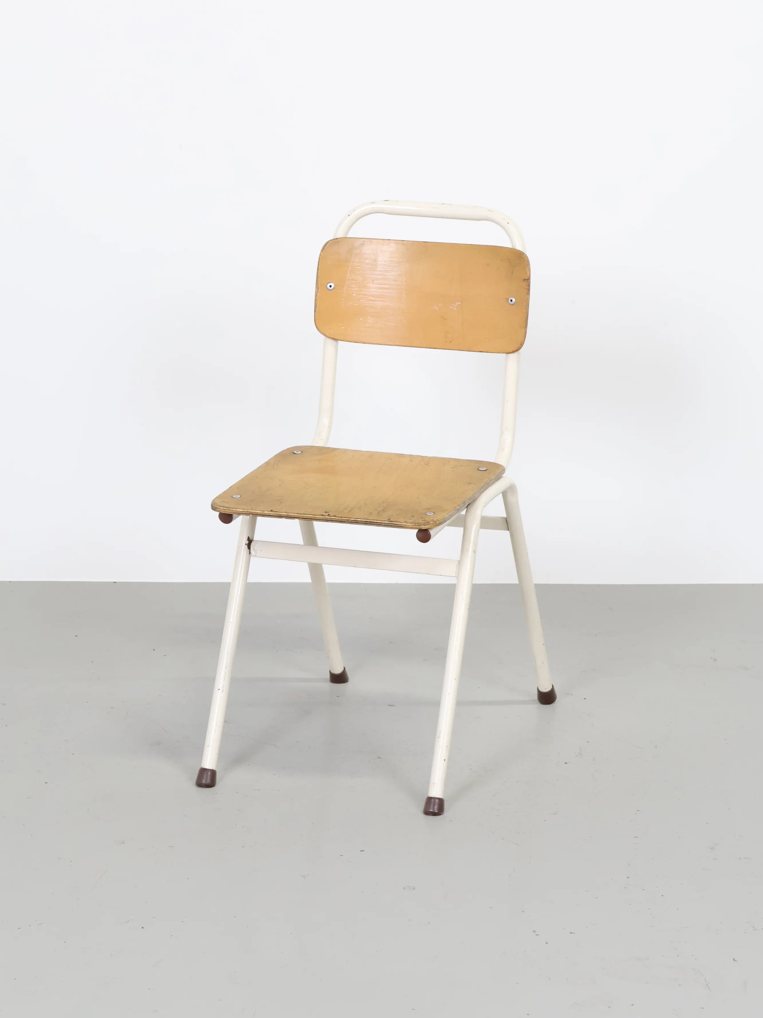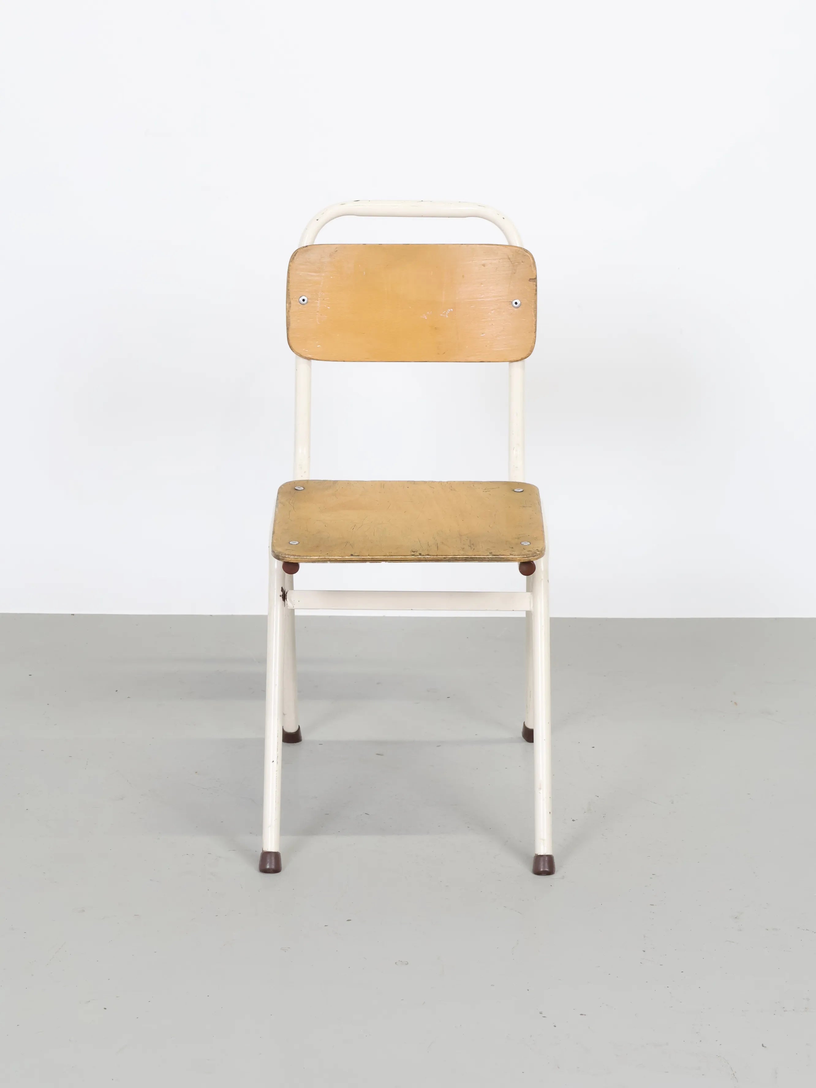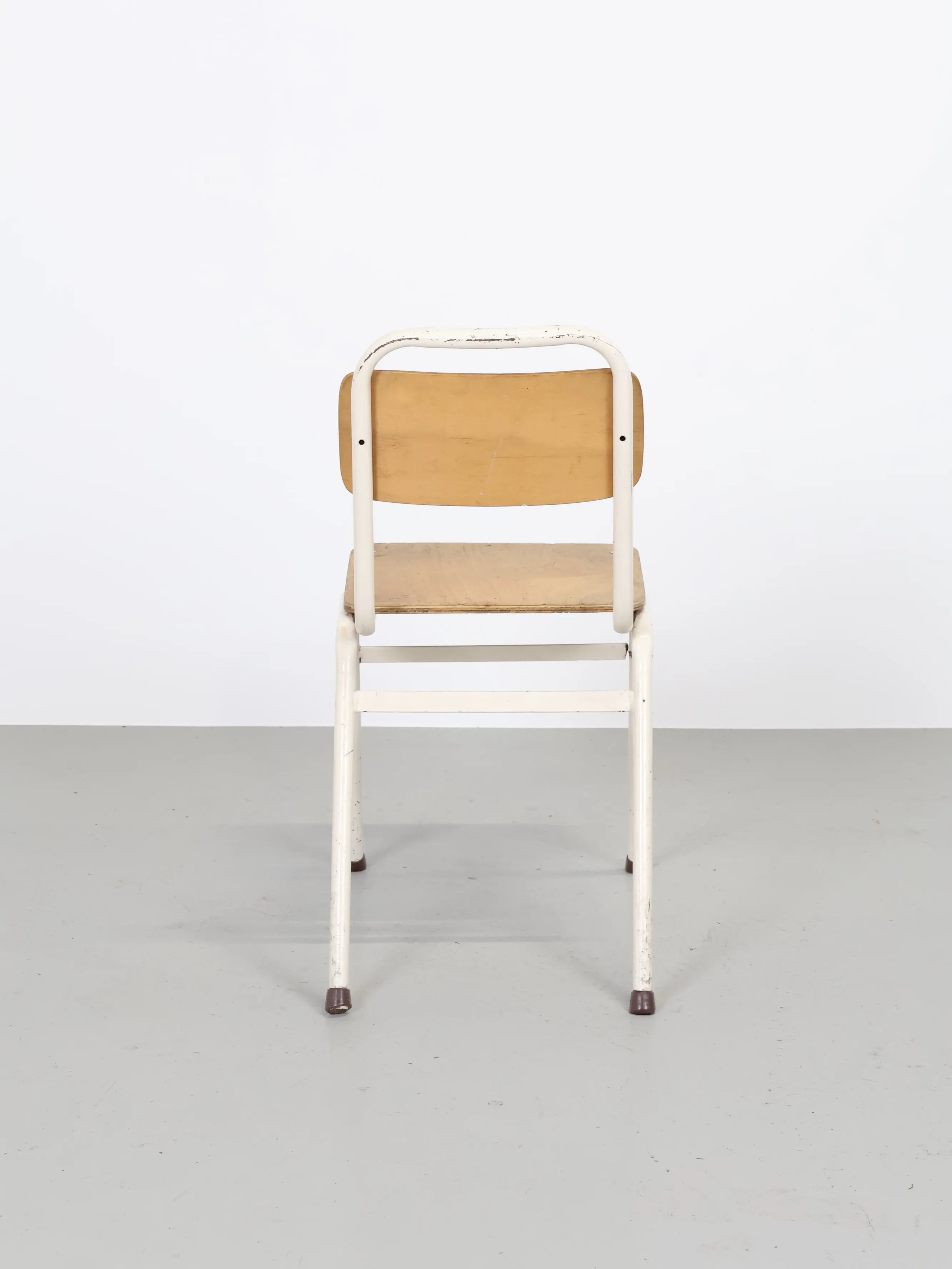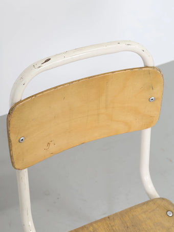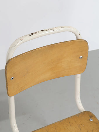 ハンガリーより買い付けました1970年代のホワイトメタルフレームウッドチャイルドチェアです。