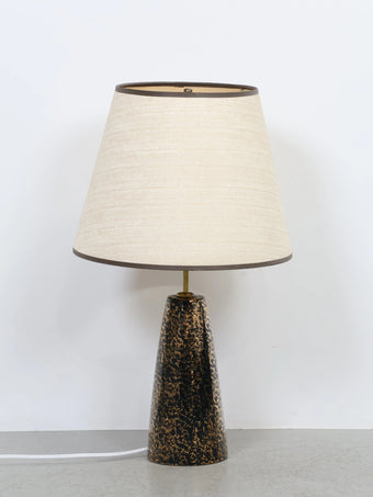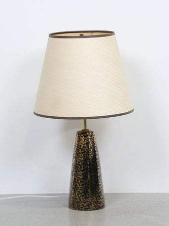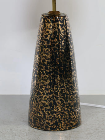 アメリカより買い付けました1950年代-60年代のブラックゴールドセラミックベースミッドセンチュリーテーブルランプです。
