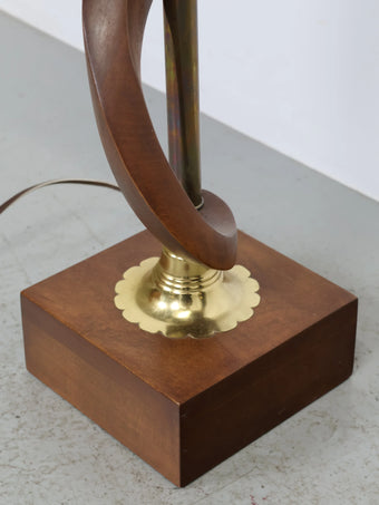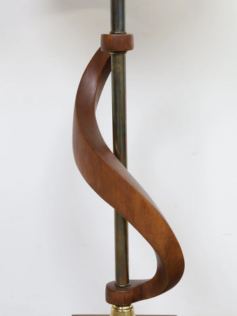アメリカより買い付けました1960年代のウッドベースミッドセンチュリーモダンテーブルランプです。