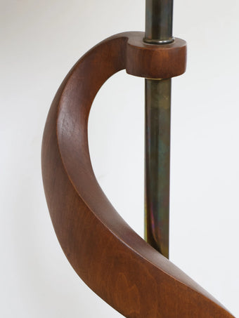 ゴールドのベースにウッドが美しく曲線を描きながら巻き付くアート性の高いモダンなデザイン。