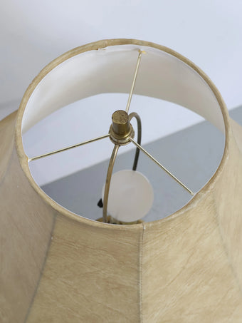 アメリカより買い付けました1970年代のアンバーガラステーブルランプです。