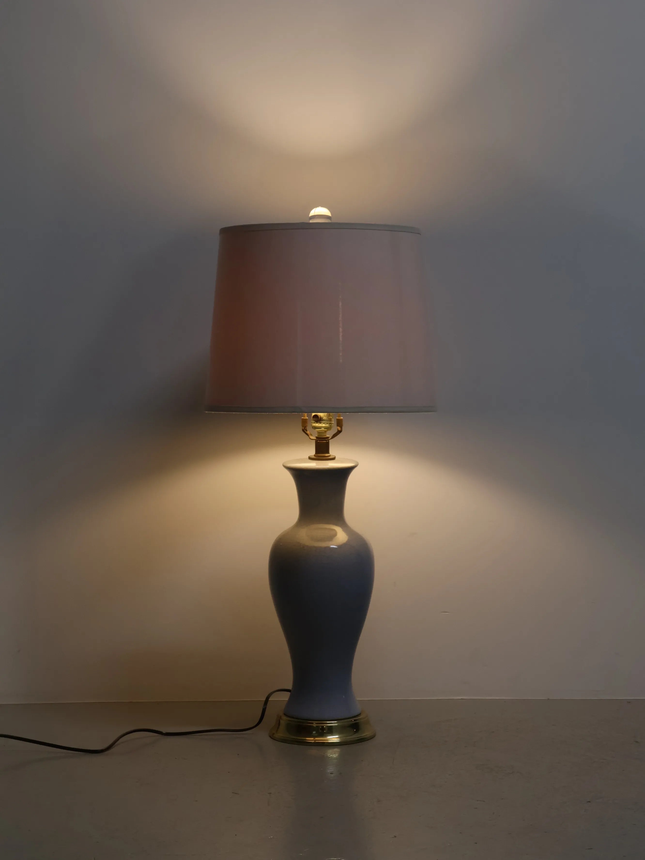 アメリカより買い付けました1970年代-80年代のブルーグレーセラミックベーステーブルランプです。