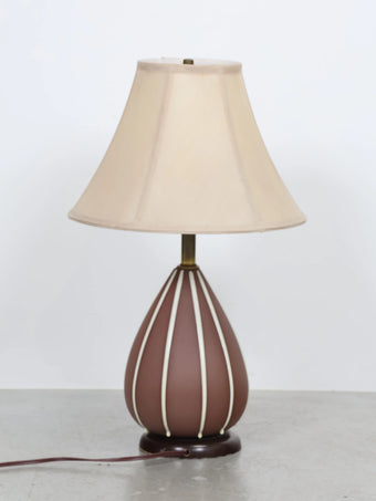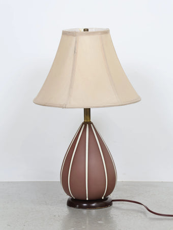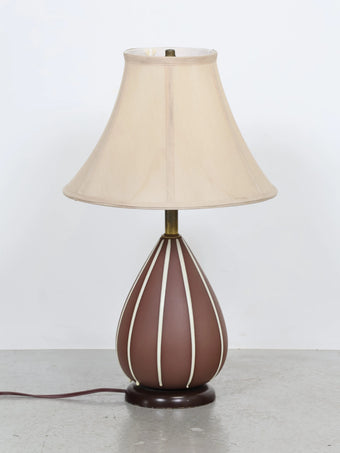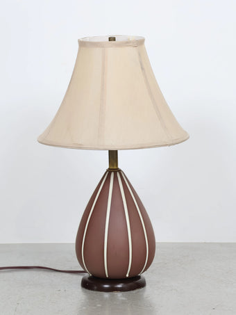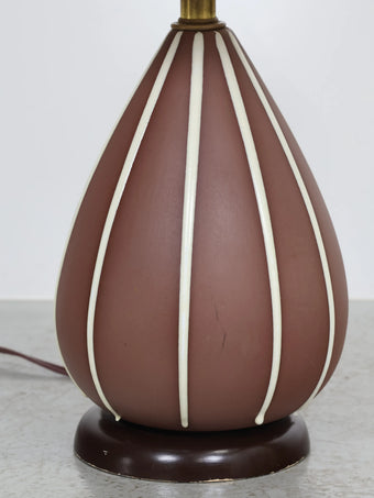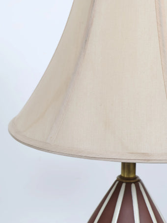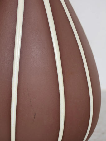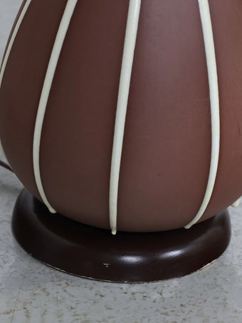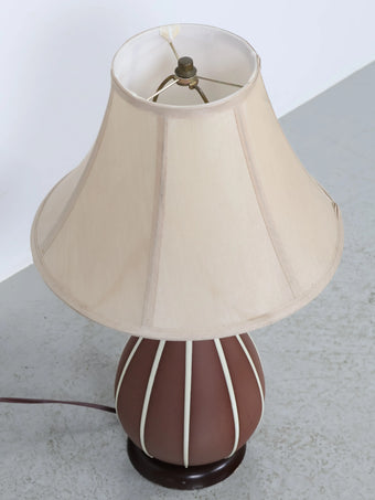 1970 - 80年代 ヴィンテージ ホワイトストライプ ブラウンセラミック テーブルランプ