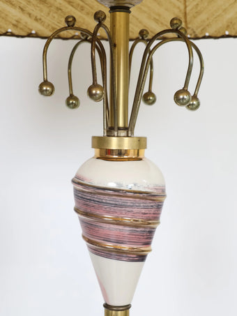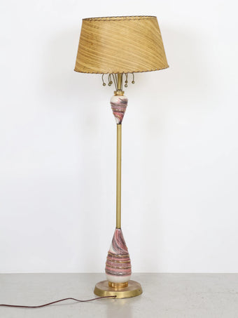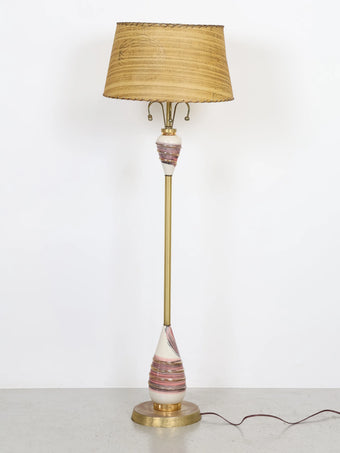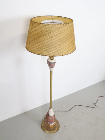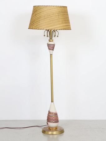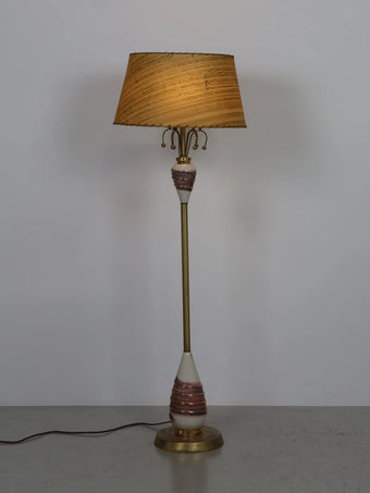 1950年代 ヴィンテージ セラミック & ブラスベース ミッドセンチュリーモダン フロアランプ