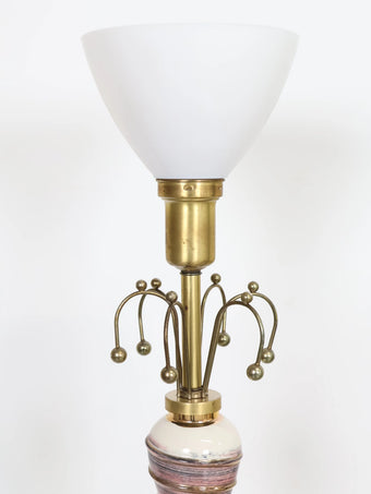 トップとボトムのセラミックやメタルのアトミックの飾りが美しい大変貴重な50'sのフロアランプ。