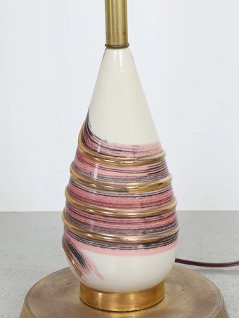 アメリカより買い付けました1950年代のセラミック&ブラスベースミッドセンチュリーモダンフロアランプです。