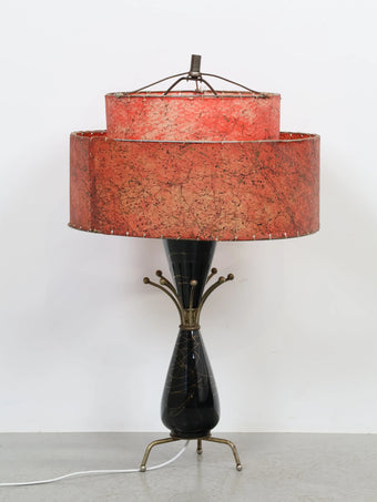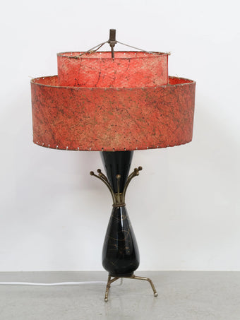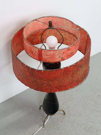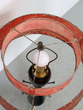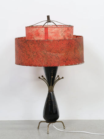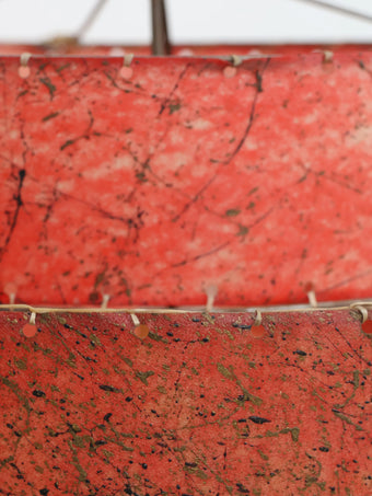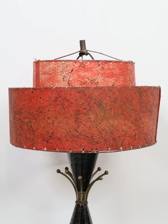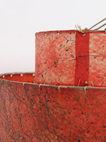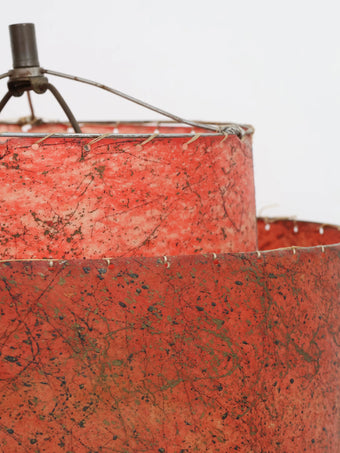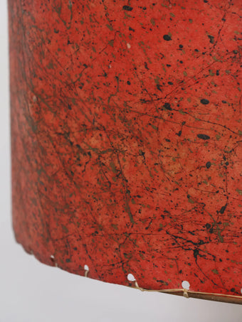 2段構成のグラスファイバーシェードにはアトミックな柄が全面に施されており、レトロなレッドカラーがシックな印象の貴重なオリジナルシェードです。