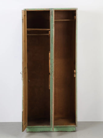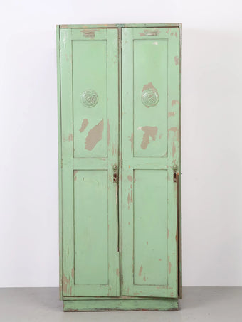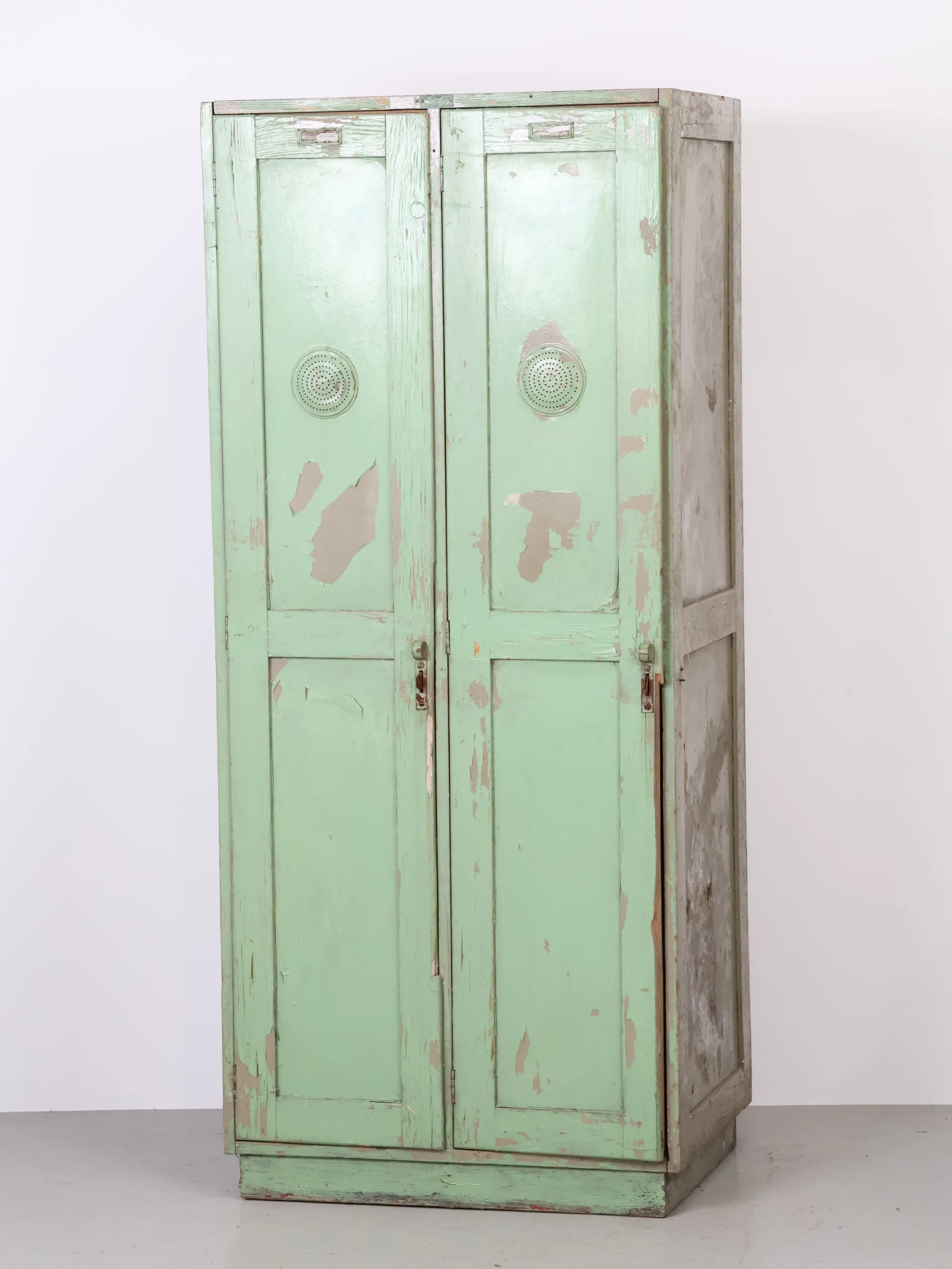 オランダより買い付けました1940年代-1950年代のミントグリーンペイントウッド2Pロッカーです。