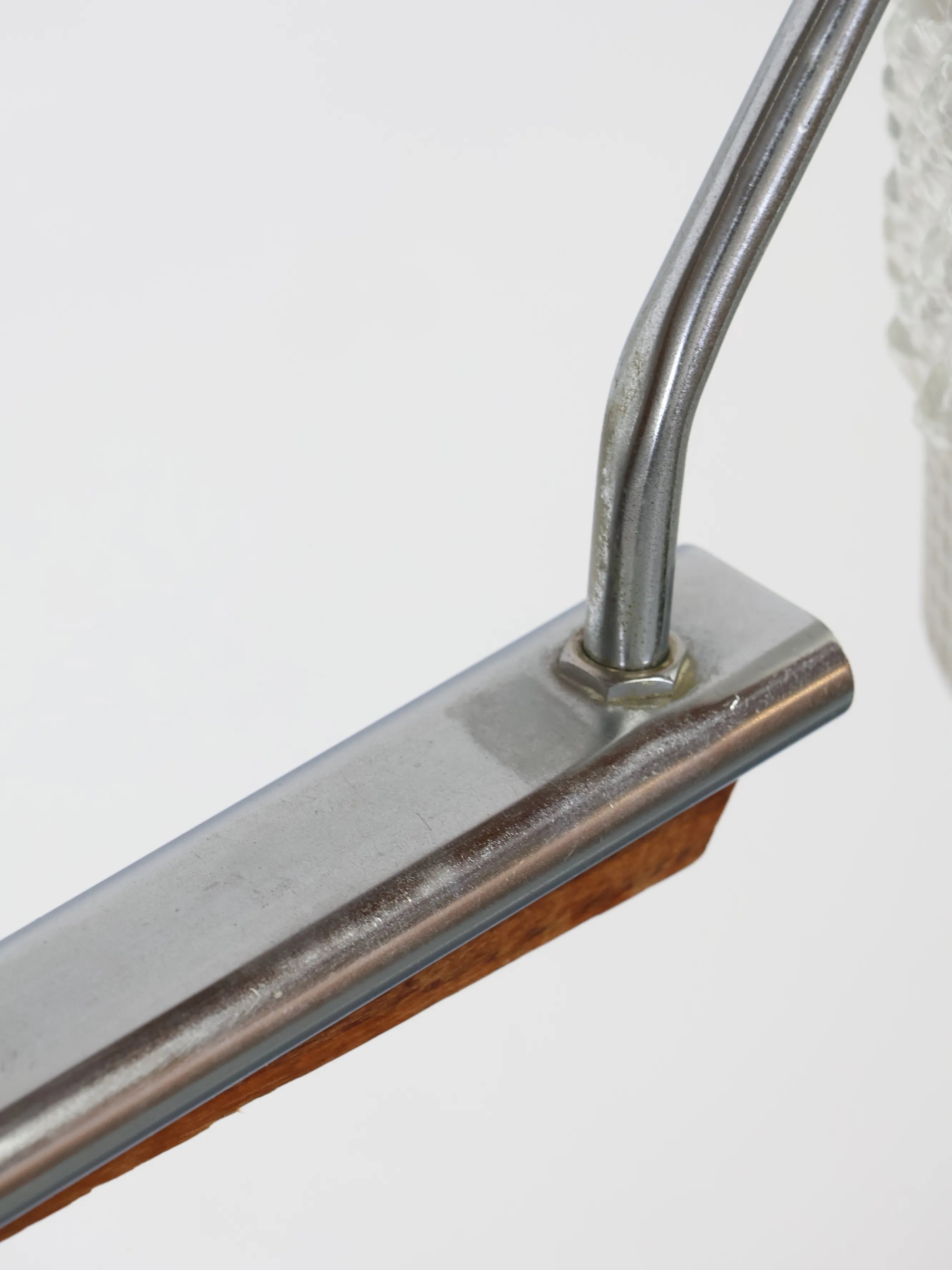 オランダより買い付けました1950年代-1960年代ウッド&メタルベースガラスシェード5灯シャンデリアです。
