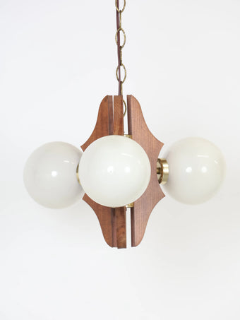 1960年代 ヴィンテージ ウッドフレーム 3灯 ホワイトアクリルボール モダン シャンデリア