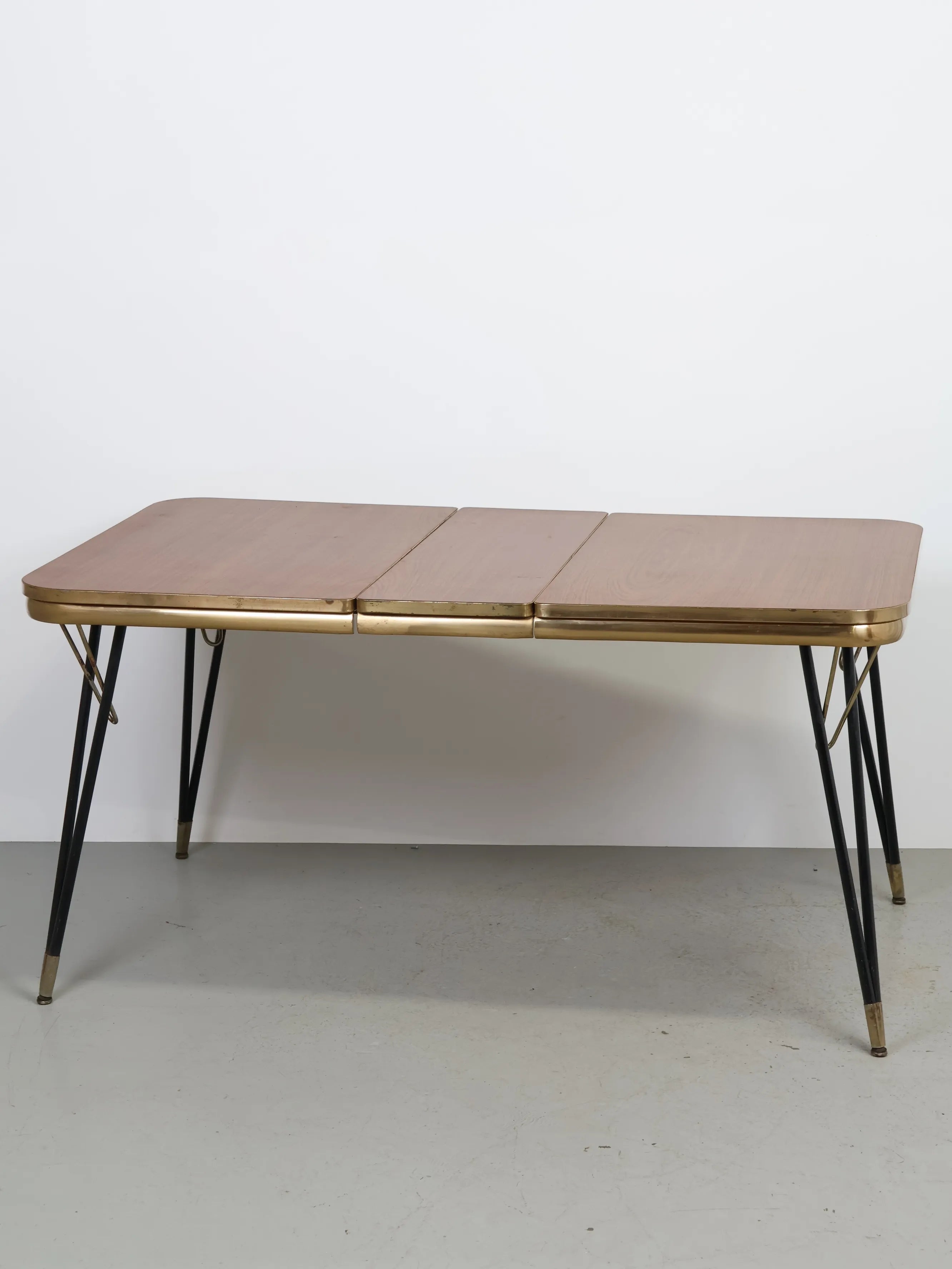 1960年代 ヴィンテージ メタルベース ブラウン ダイナーテーブル