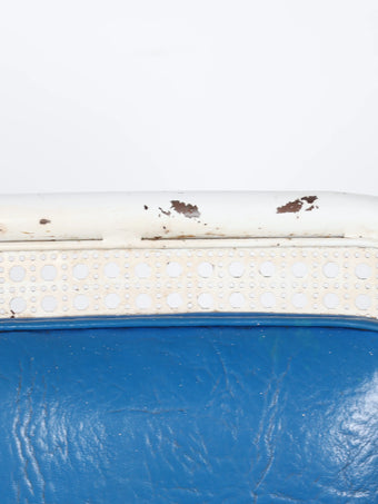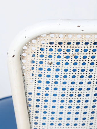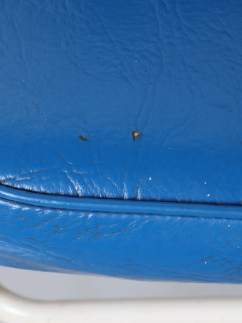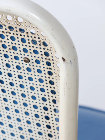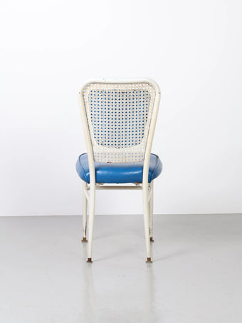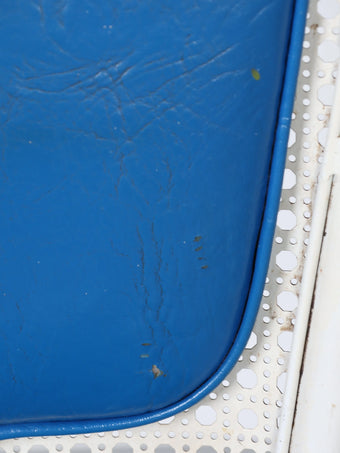 デザイン性の高いホワイトのフレームにブルーのクッションがモダンでスタイリッシュなチェア。