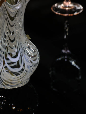 ガラストップの天板がライトや光に反射して艶やかな表情を演出してくれます。