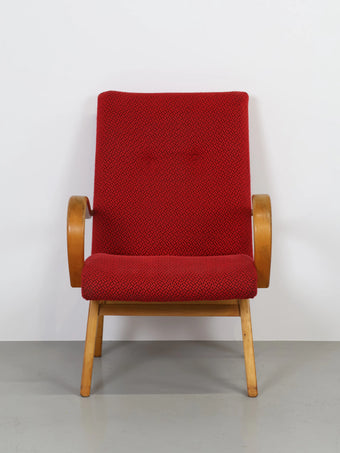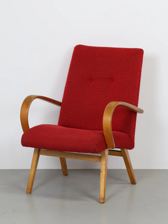 ハンガリーより買い付けました1960年代のJitona社製レッドファブリックイージーチェアです。