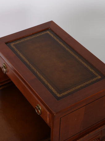 天板のレザートップとウッドの風合いがクラシックで高級感溢れる逸品。
