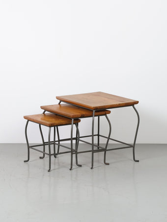 1960 - 70年代 ヴィンテージ アイアンレッグ 3サイズ ネスティング ウッド サイドテーブル