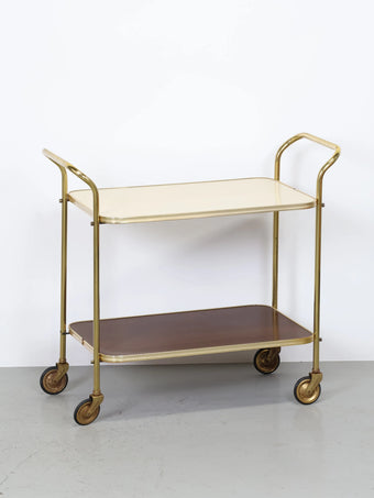 オランダより買い付けました1960年代-70年代のメタルフレームウッド 2段サービングワゴンです。
