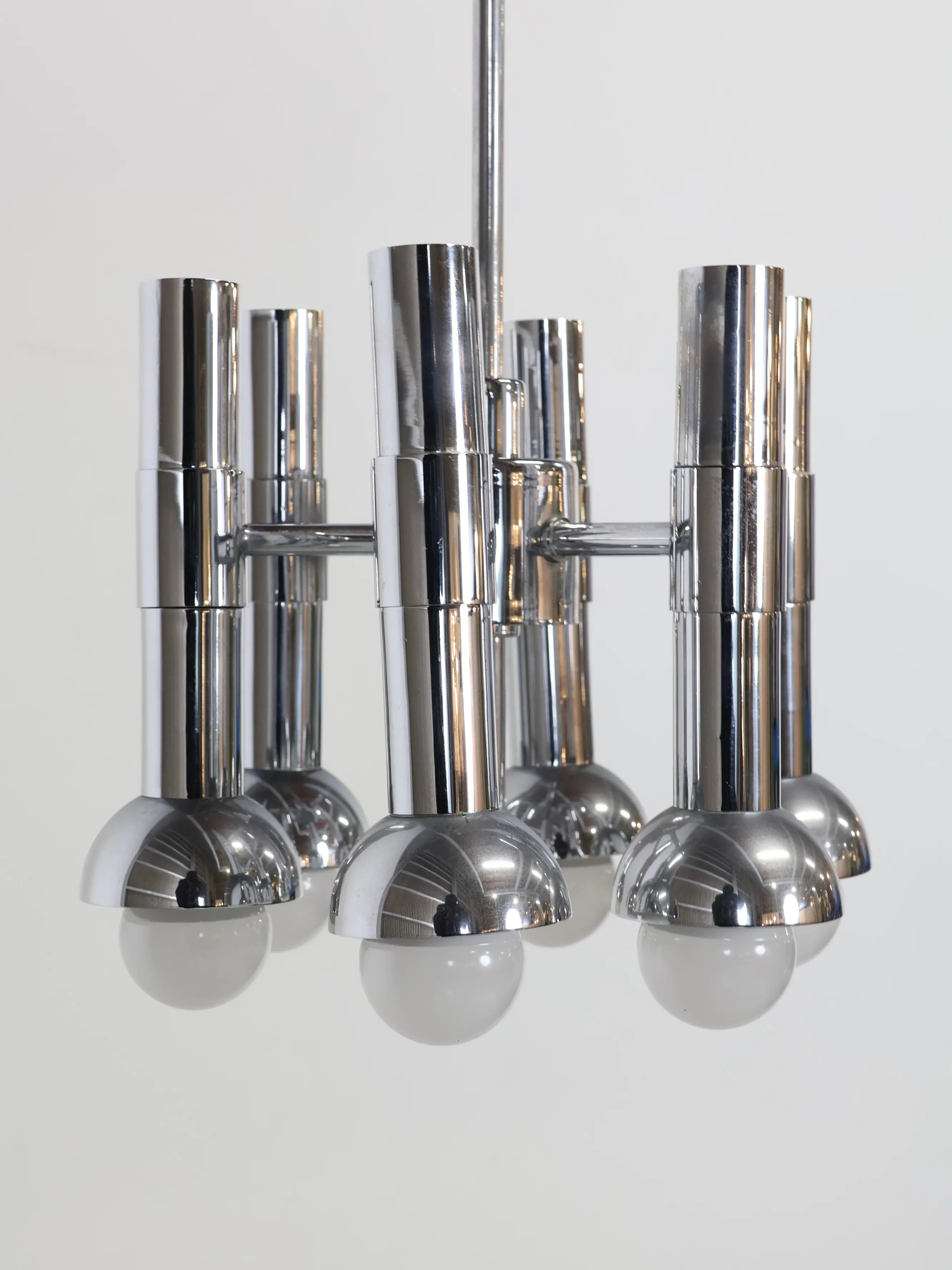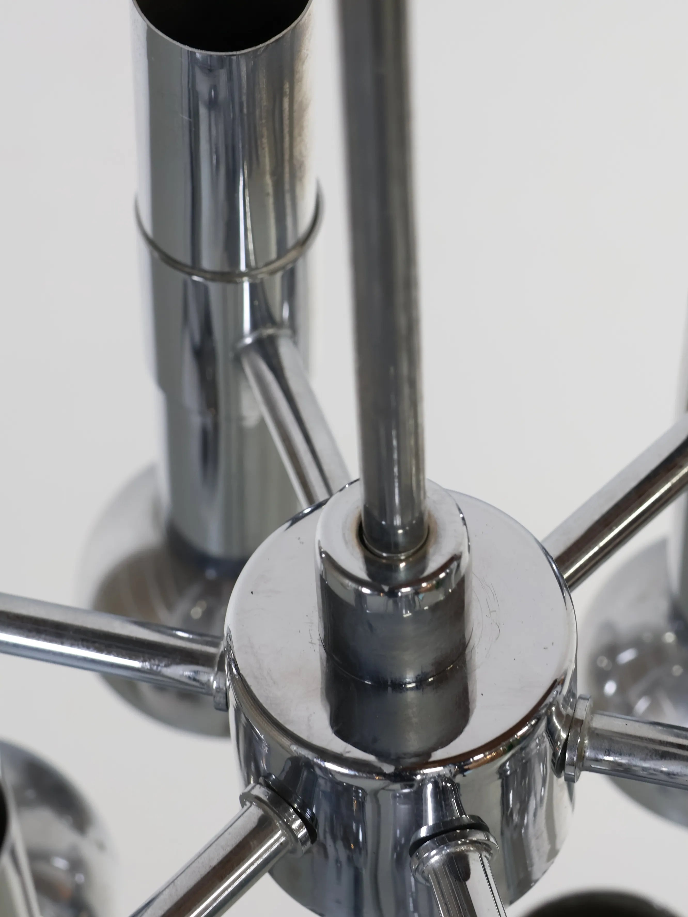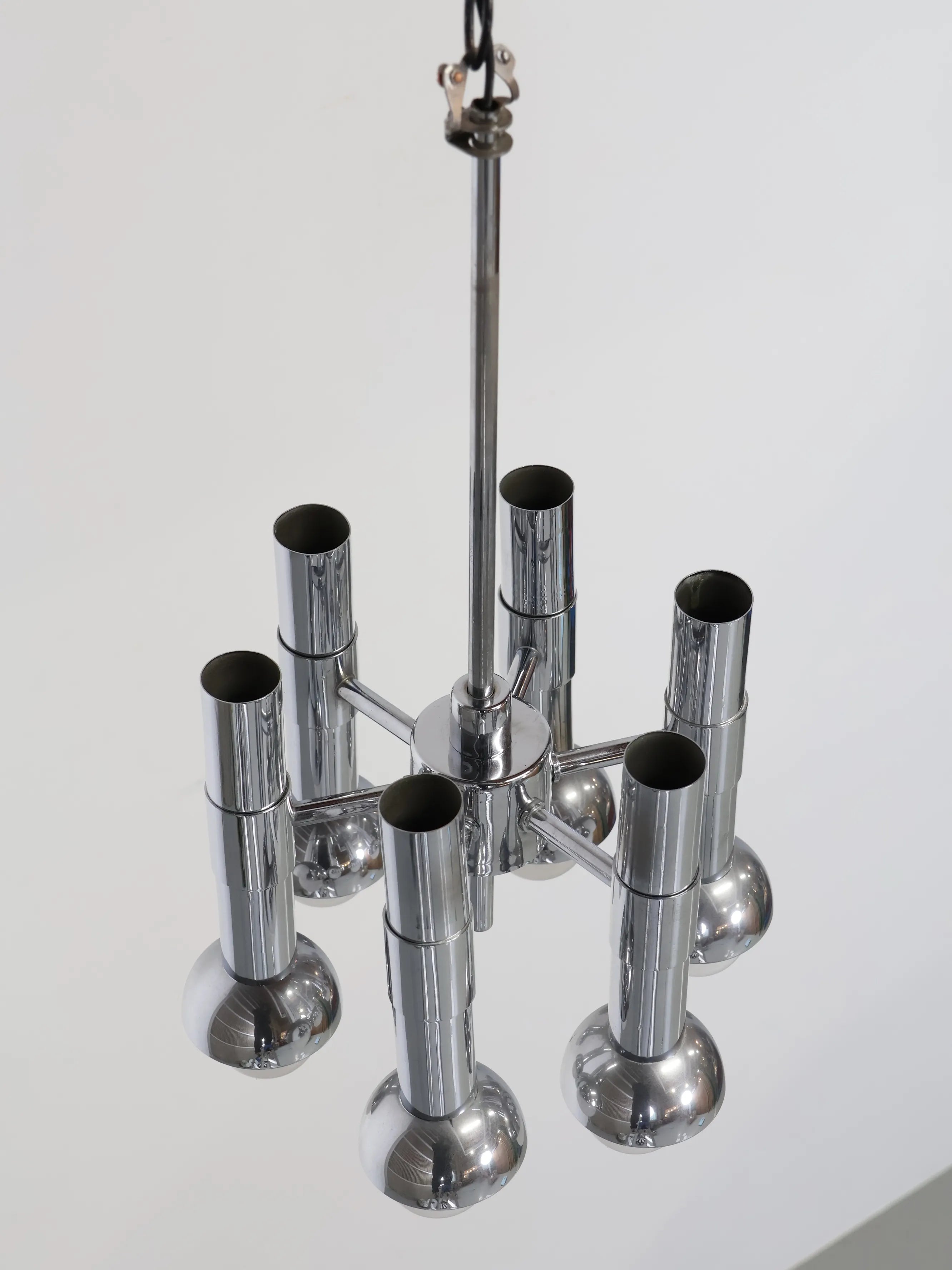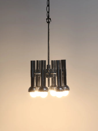 オランダより買い付けました1960年代-70年代のメタルベーススペースエイジ6灯シャンデリアです。